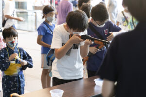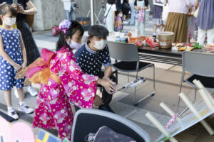 「第12回 鴨台盆踊り」では、「子どもの笑顔を取り戻す」を目標に、遊びやワークショップなどの子ども向け屋台の充実させました。また、近年本学が力を入れている高大接続に関して、実質的な高大接続の初の試みとして、高校生も参画して学びの成果を出展しました。