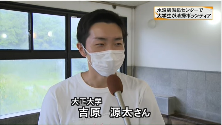 吉原源太さん(公共政策学科2年)が水沼駅温泉センターのインターンシップに参加したことをきっかけに始めた大学生によるボランティア活動「おそうじ大作戦」の様子が群馬テレビで紹介されました。 吉原さんのコメントも放送されています。是非ご覧ください。