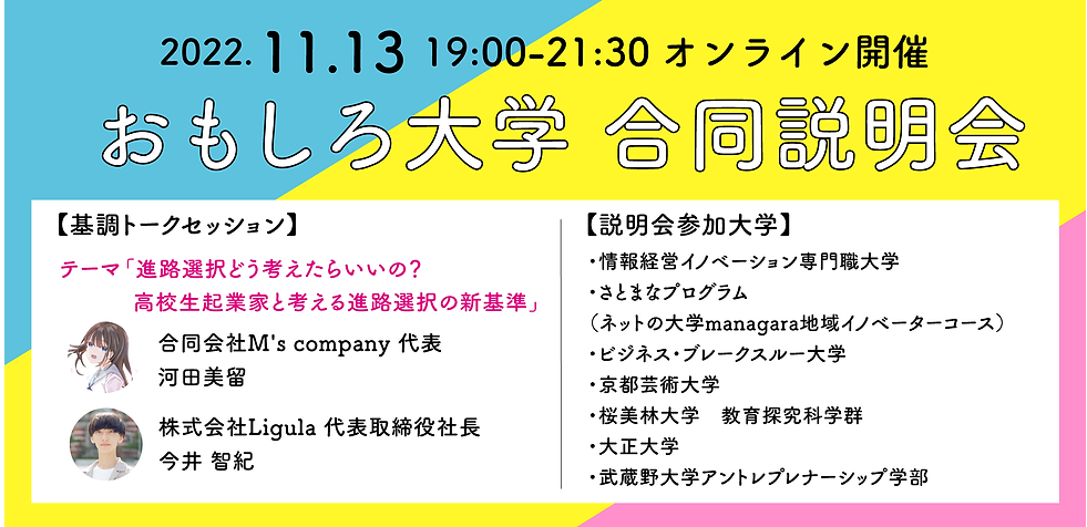 2022年11月13日(日)に開催の実践型大学群7校が共催する「第4回 おもしろ大学合同説明会」に大正大学が出演します。