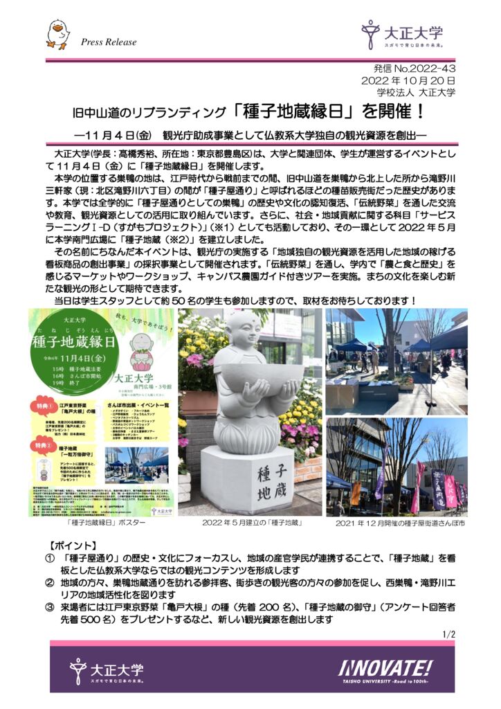 【プレスリリース】旧中山道のリブランディング「種子地蔵縁日」を開催! ―11月4日(金) 観光庁助成事業として仏教系大学独自の観光資源を創出―