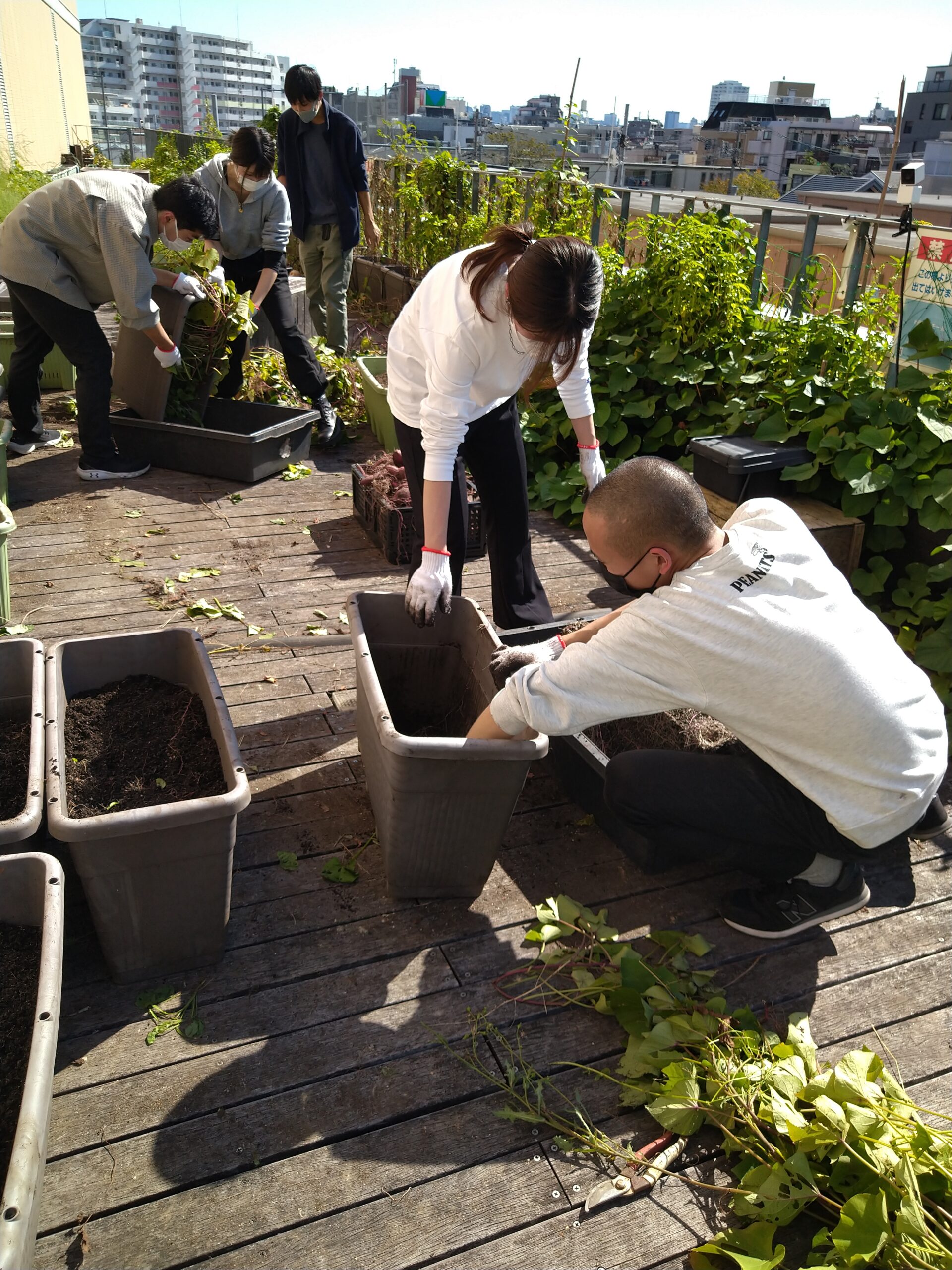 【イベント情報】7号館3階テラスのキャンパス農園にてサツマイモが収穫されました