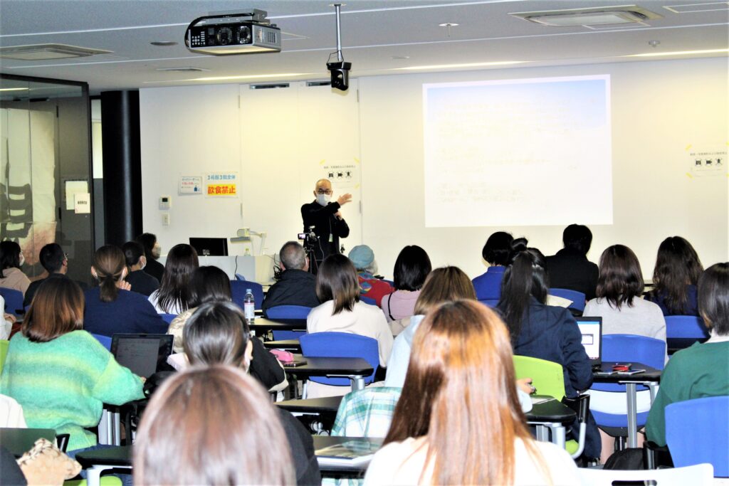 今年の映像祭は、TBSテレビ江藤俊久プロデューサーによる公開授業(講演会)を開催し、エンタメに興味がある学生に向け、企画の立て方や仕事の内容についてご自身の経験談を交えながら語っていただきました。