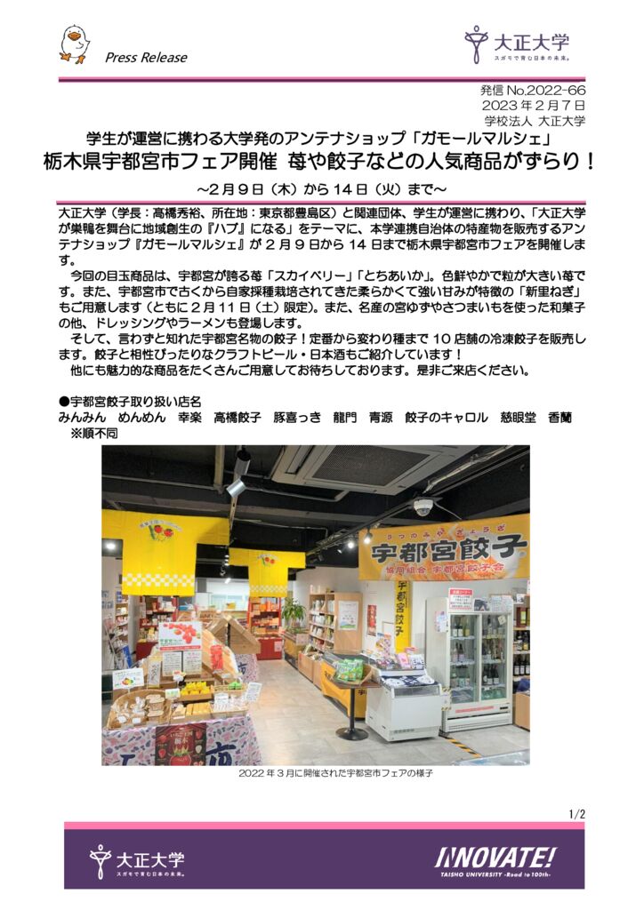【プレスリリース】学生が運営に携わる大学発のアンテナショップ「ガモールマルシェ」 栃木県宇都宮市フェア