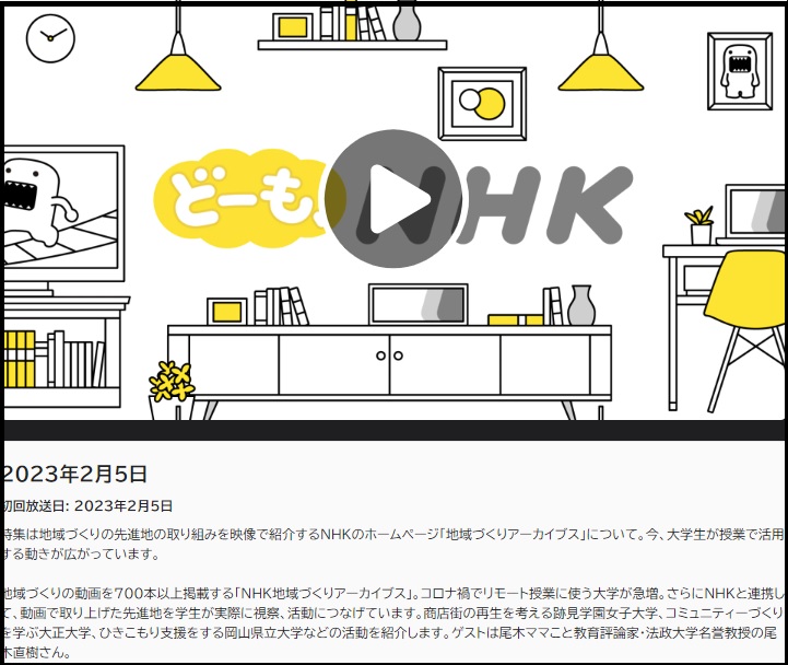 地域創生学科の取り組みが2月5日(日)「どーも、NHK」で紹介されました。