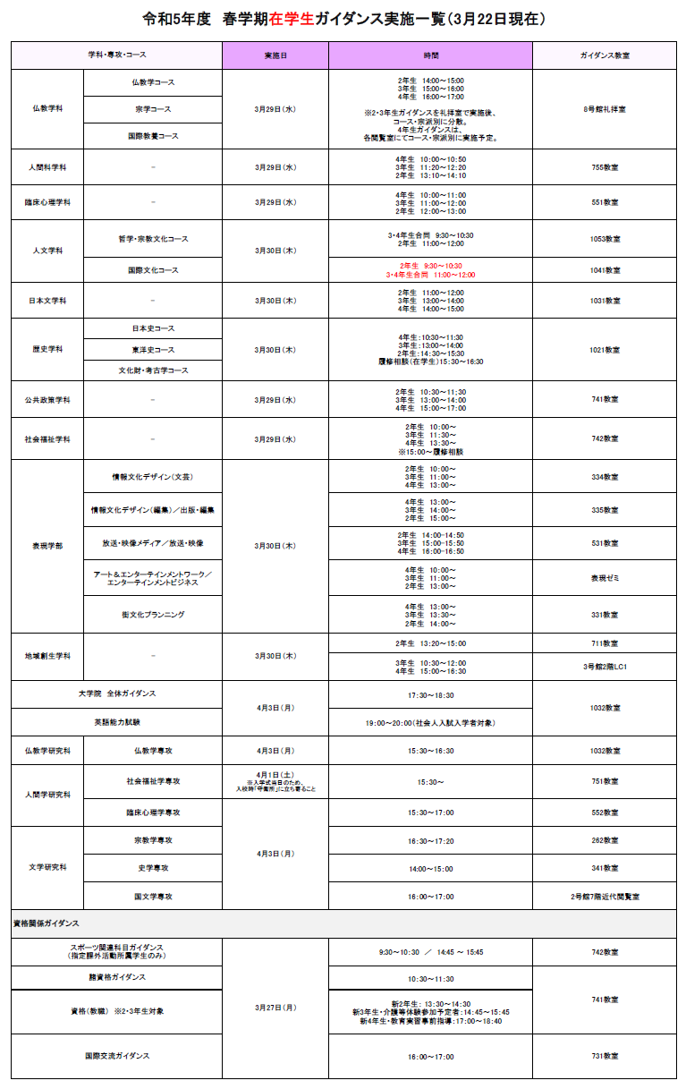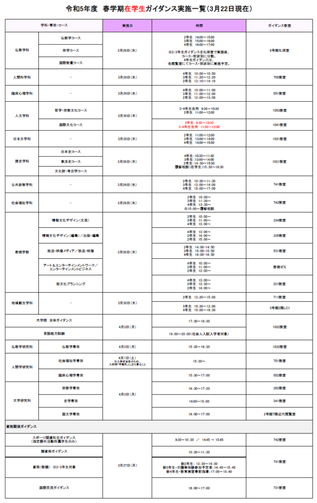 【お知らせ】令和5年度 春学期ガイダンススケジュールについて(令和5年3月28日現在)