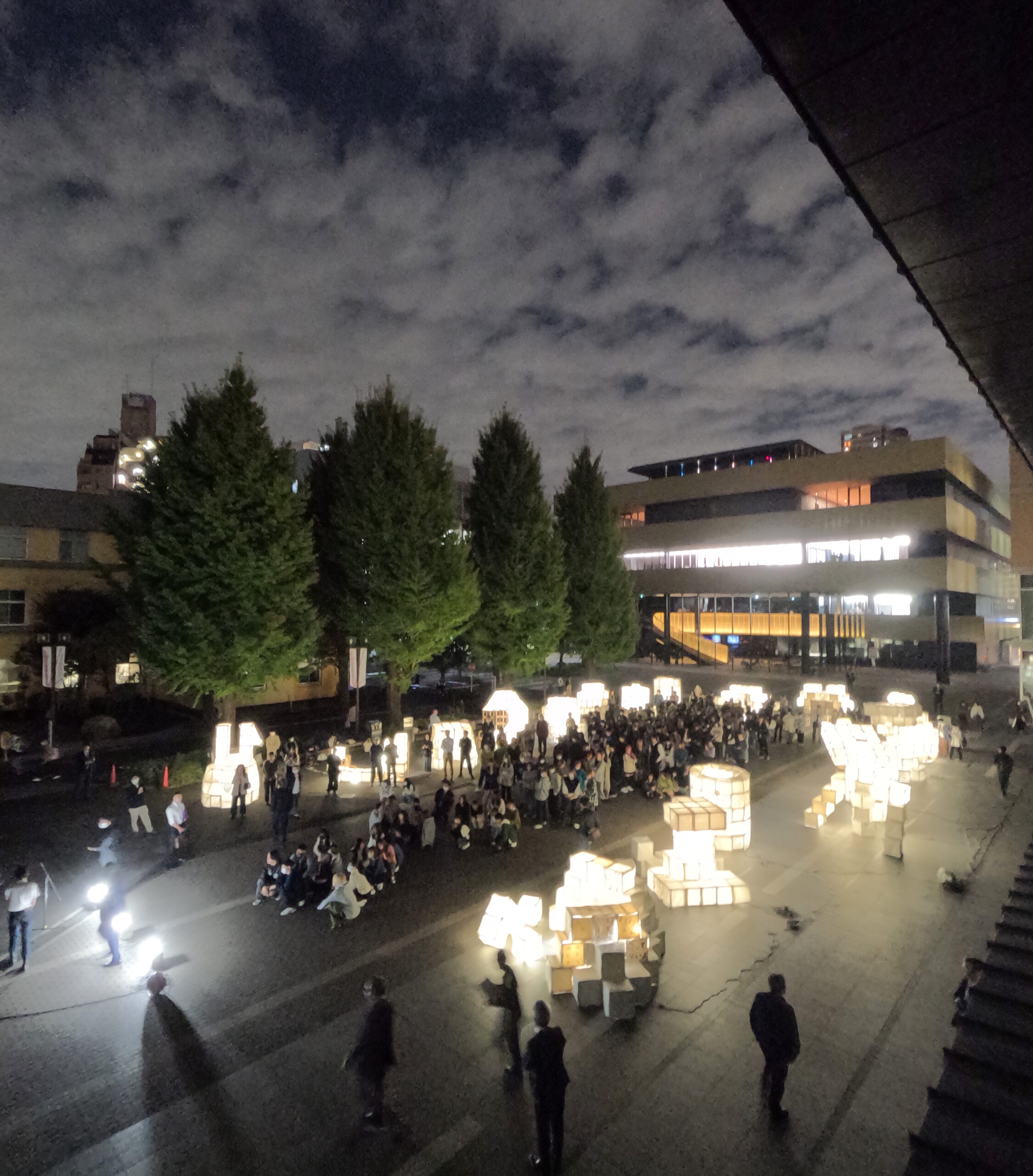 今年度も昨年度と同じ「なんでもねぷた」というテーマで、複数のチームが紙管を使用したキューブを組み立て、学生それぞれが伝えたいメッセージを載せました。