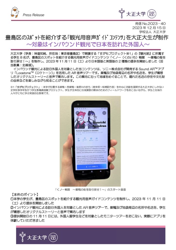 【プレスリリース】豊島区のスポットを紹介する「観光用音声ガイドコンテンツ」を大正大生が制作 ~対象はインバウンド観光で日本を訪れた外国人~