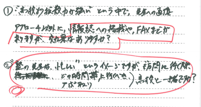 ▲進学塾・予備校が最も忙しい「夏期講習」「冬期講習」「直前講習」の期間の塾訪問は避ける必要があること。塾訪問でねらうべきは、13時すぎから15時前までの時間帯、といった情報提供もありました。