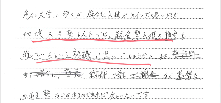 ▲西田氏が全国300塾の塾長・校舎長・教室長からヒアリングしてまとめた独自の「大学ダブル合格調査」。大手予備校も全国模試データを使って、同種の調査を実施しているが、中小規模大学への志望動向を把握するには、精度が低く、地域に密着して受験指導を行う「塾」の方が良質のデータを得られるという。