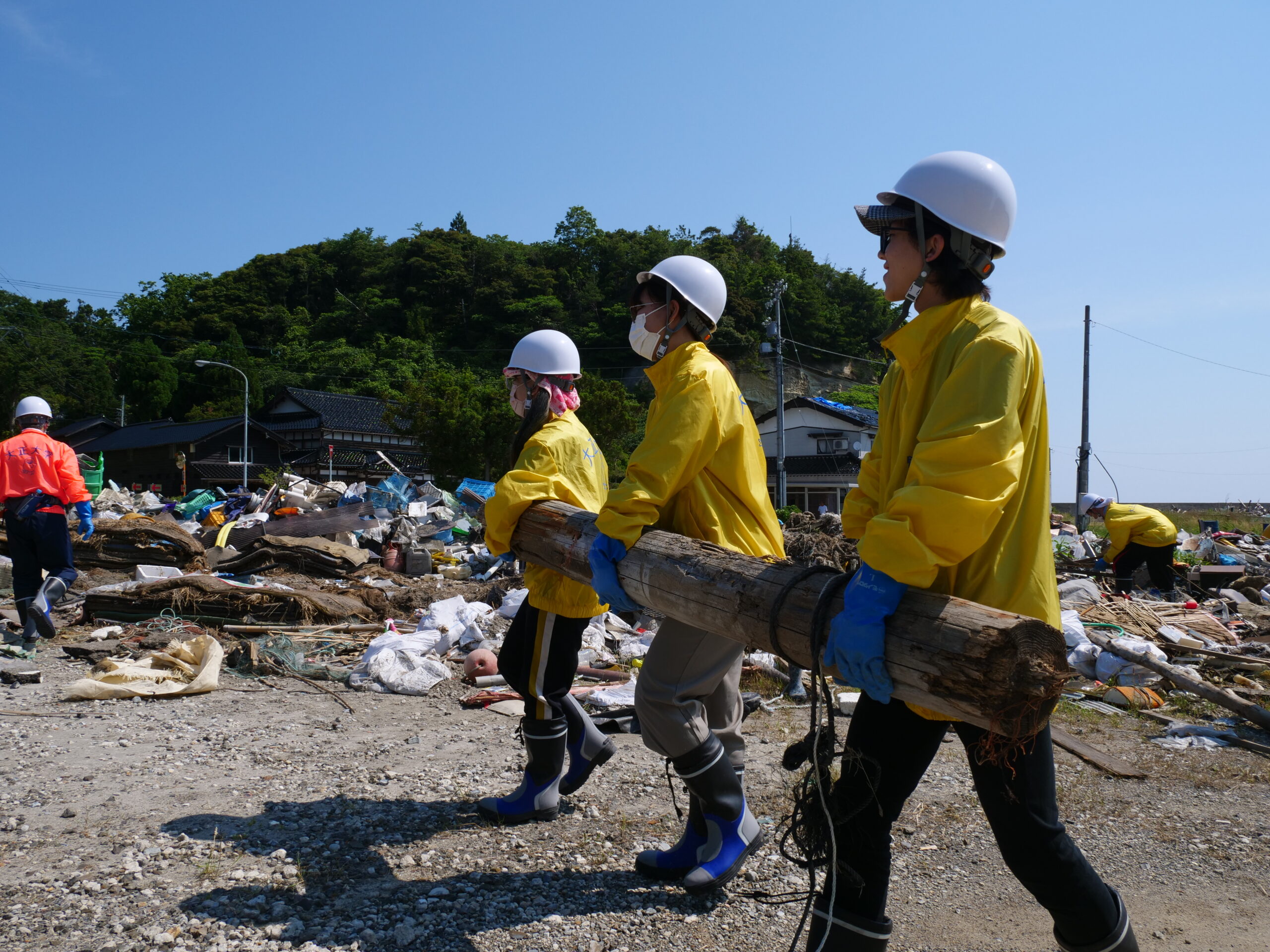 今回の活動では、海岸に山積みになった瓦礫を分別する班と、家屋から家財を搬出する班に分かれて作業を行いました。