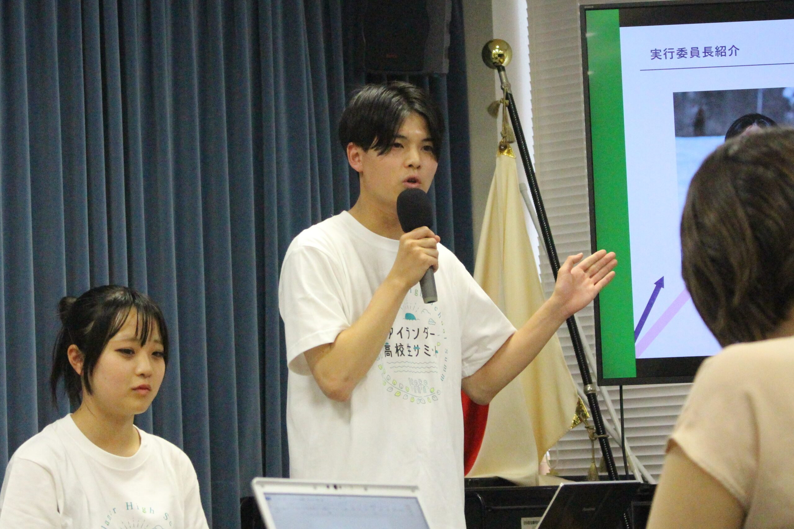 当日は、サミット開催の経緯や目的、サミットに懸ける思いや意気込みなどを語るとともに、来年1月のサミット開催に向けて、離島の高校生への参加を呼びかけました。