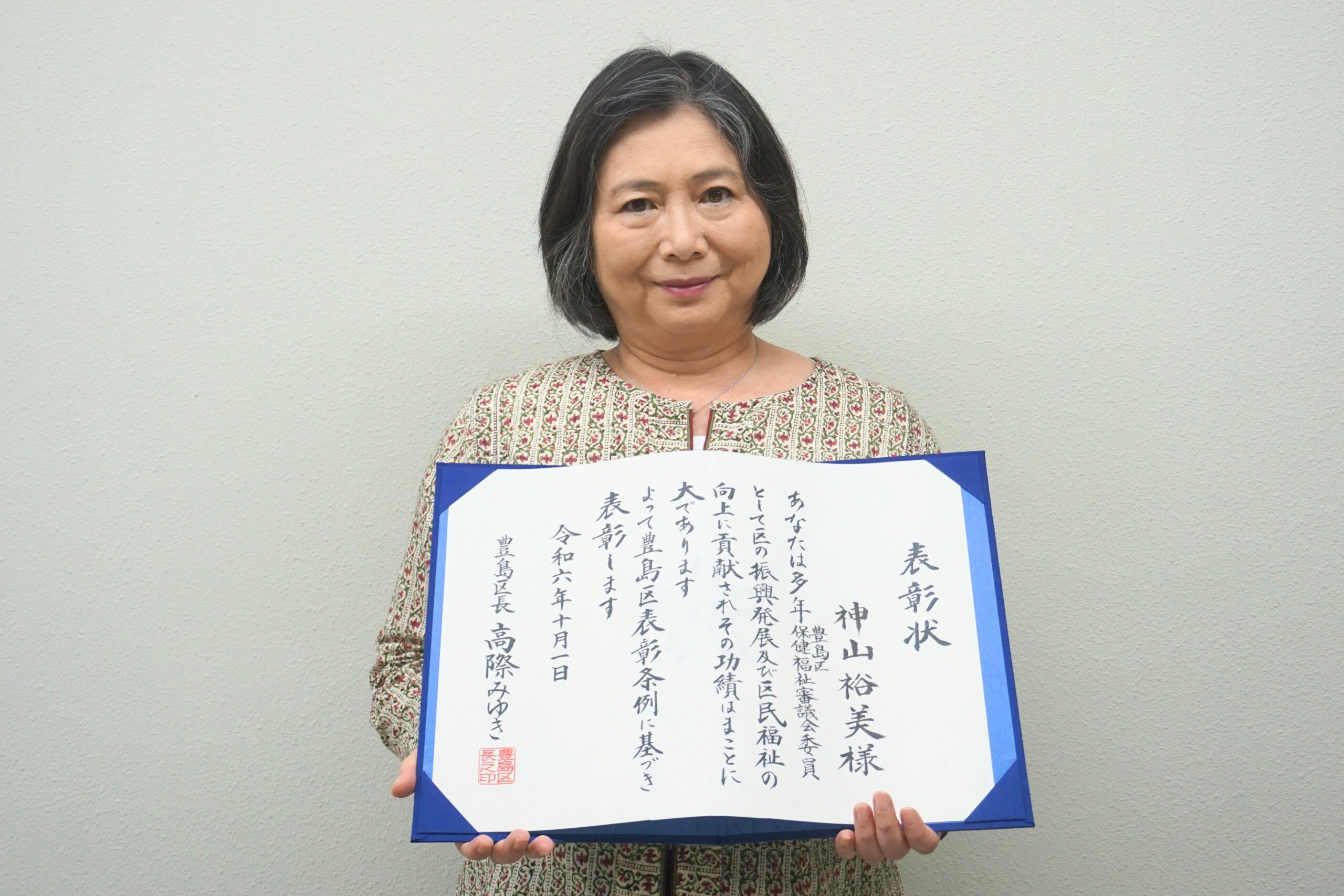 神山裕美教授(社会福祉学科)が豊島区功労者として表彰され、10月1日に表彰式が行われました。