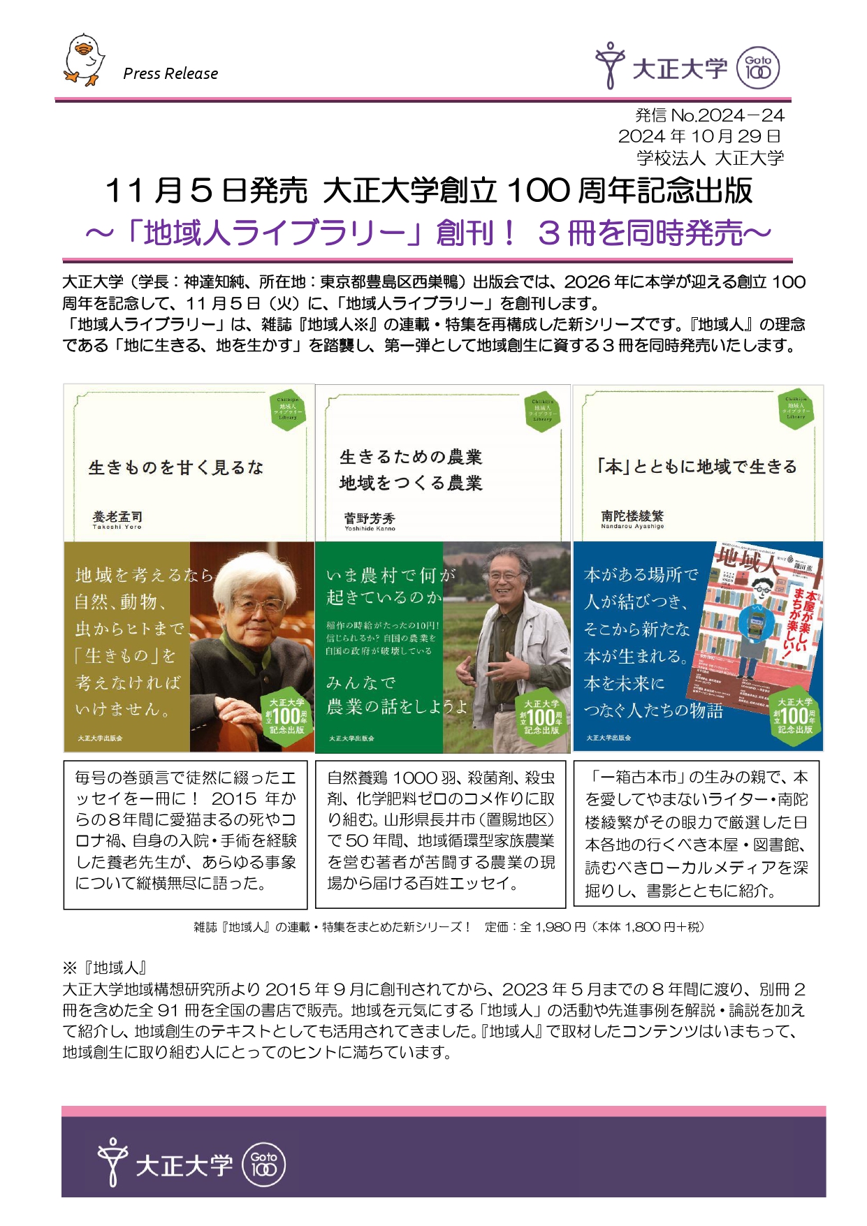 ※『地域人』…… 大正大学地域構想研究所より2015年9月に創刊されてから、2023年5月までの8年間に渡り、別冊2冊を含めた全91冊を全国の書店で販売。地域を元気にする「地域人」の活動や先進事例を解説・論説を加えて紹介し、地域創生のテキストとしても活用されてきました。『地域人』で取材したコンテンツはいまもって、地域創生に取り組む人にとってのヒントに満ちています。
