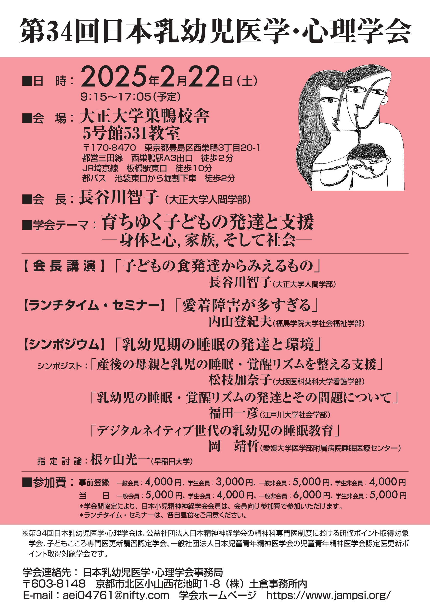 問い合わせ先:日本乳幼児医学・心理学会事務局(aei04761@nifty.com)
