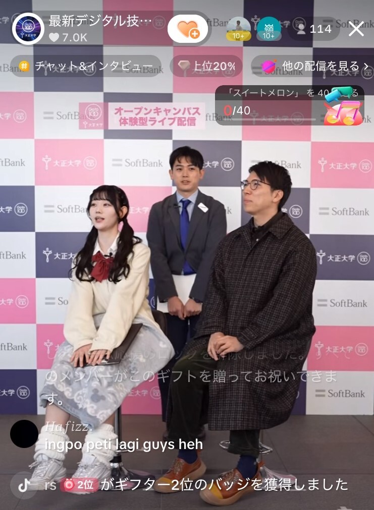 ▲公式Tiktok(@taisho_100)でも生配信しました
