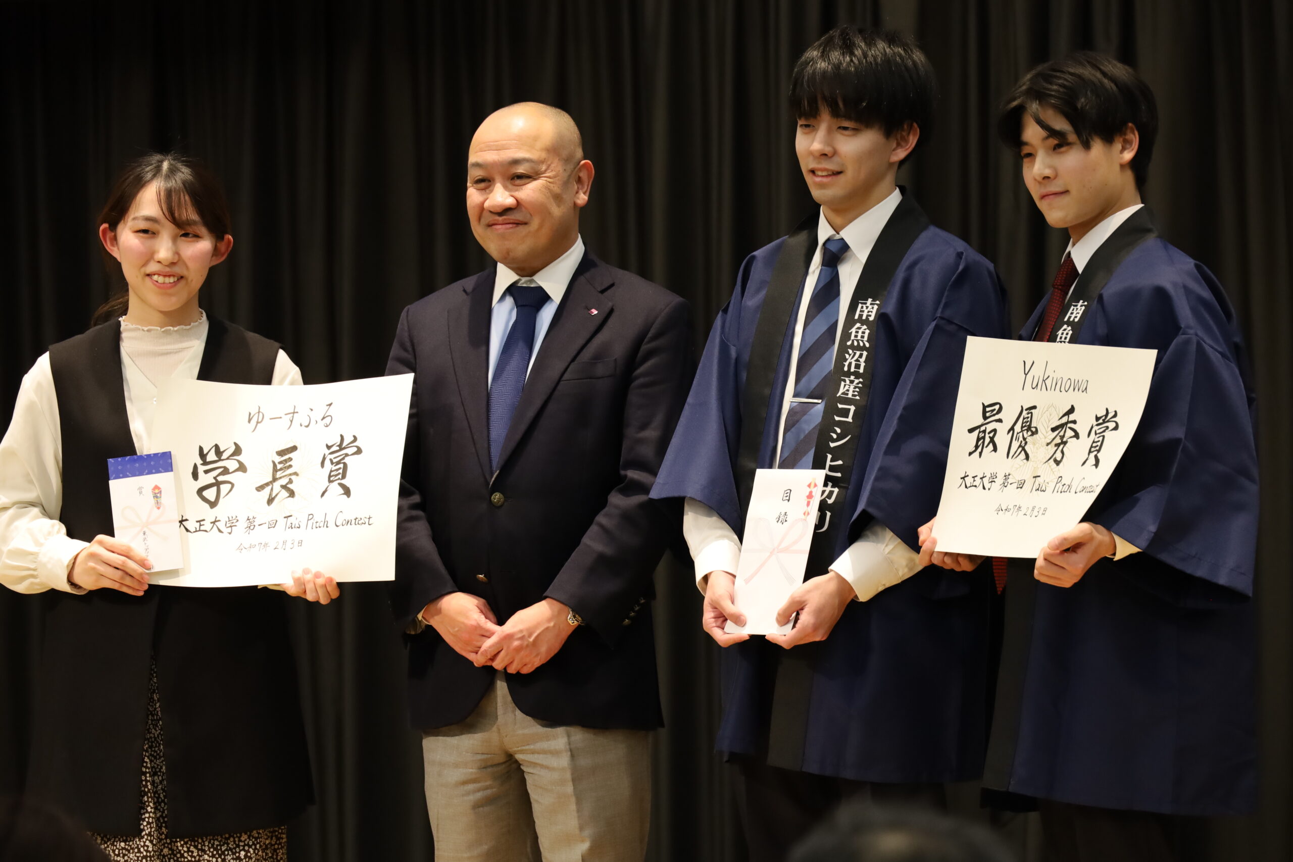 学長賞を受賞した「チームゆーすふる」の長田さんは「働きながらこのプランを実現していきたいです。受賞だけで満足せず、これからも頑張ります」と決意を新たにしていました。