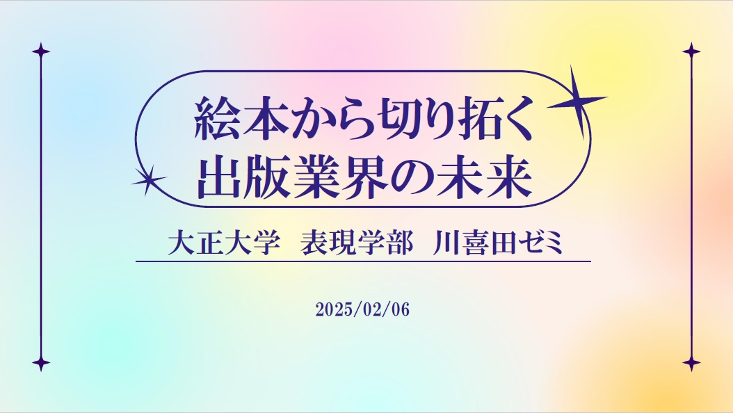 表現文化学科(現:メディア表現学科)アート&エンターテインメントワークコースの川喜田尚ゼミの学生が、株式会社ポプラ社で「絵本から切り拓く出版業界の未来」をテーマに研究発表と提案を行いました。