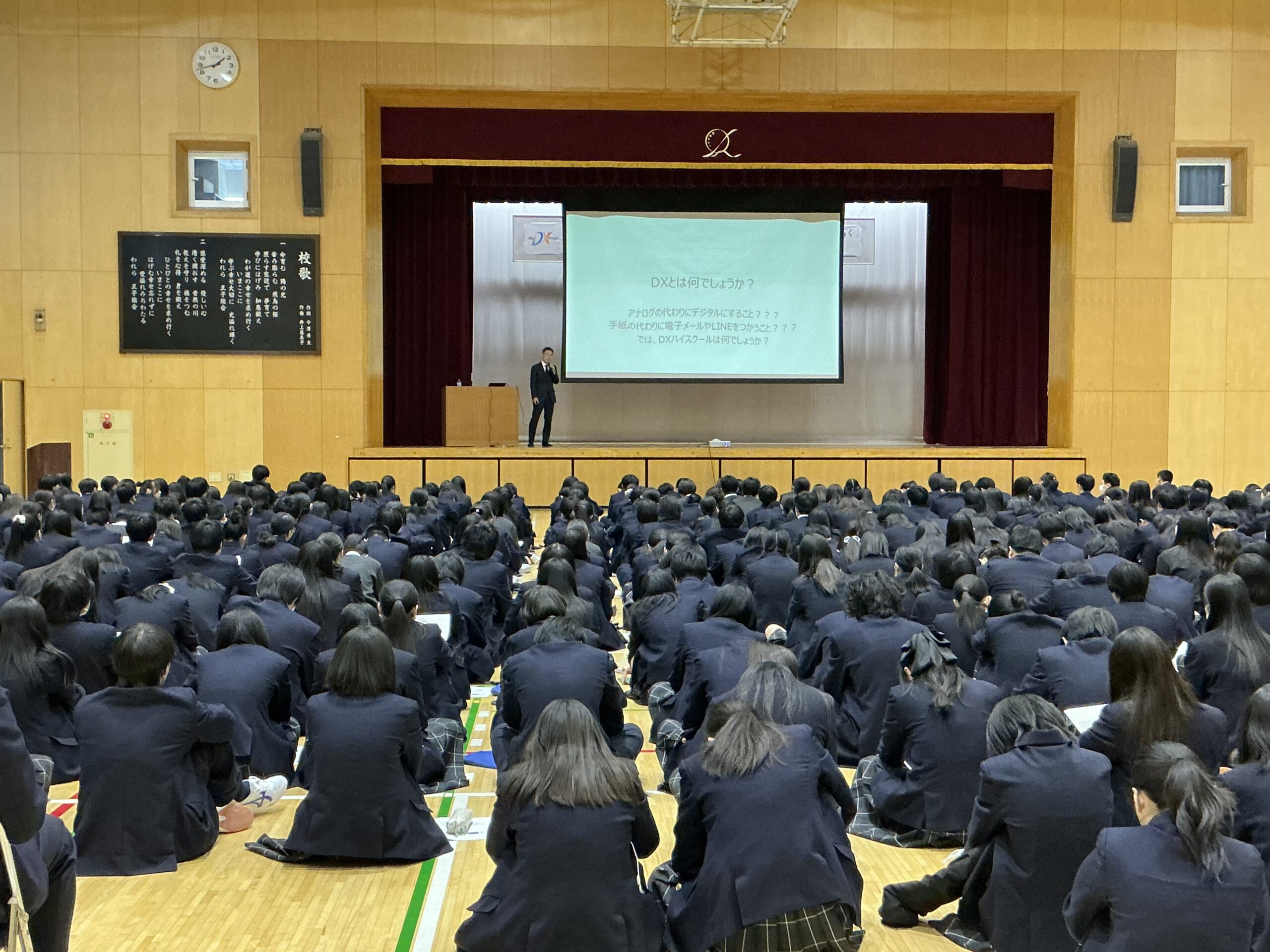 具体的には『王子総合DXハイスクールに寄せて—デジタルで未来を切り拓く—』と題して「DXとは何か」、「デジタル人材が求められる理由」、「IoTとAIによる社会の変革」などについて解説。さらに生徒の皆さんの進路選択を見据えて、理学と工学の違いや、文系・理系を区別せずに横断的に学ぶ「文理融合」の重要性についても語りました。