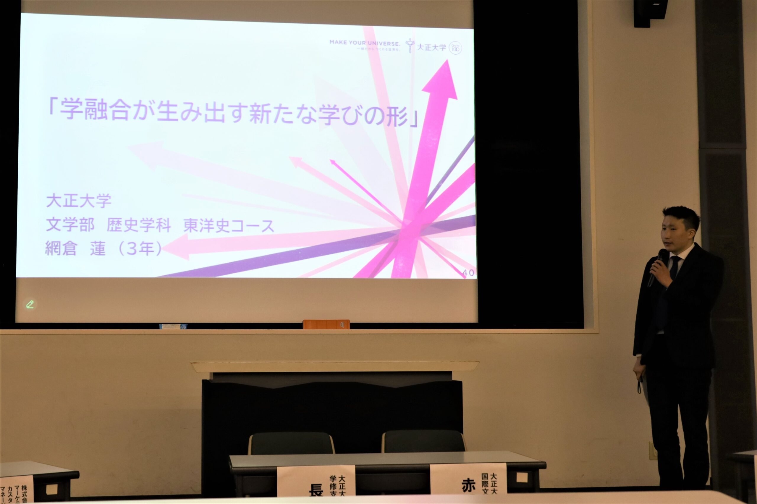 4人の代表学生による事例紹介では「理論と実践を統合した学び」が、自身の成長やキャリア形成にどのようにつながっているのかについて発表。その後のパネルディスカッションでは、有識者を交えて「学びの統合から未来を展望する」をテーマに、学融合が生み出す価値や今後の可能性について議論しました。