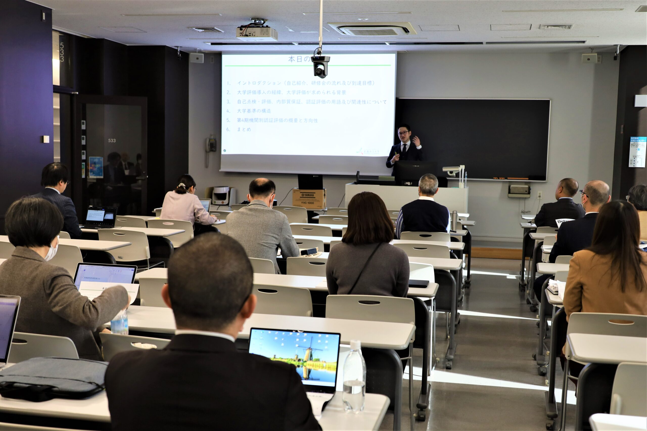 本学は、令和9年度に第4期認証評価の受審を控えていることから「『認証評価/自己点検・評価』の意義・目的」および「学生参画による内部質保証の意義」について理解を深めることを目的に、今回の研修会を開催しました。