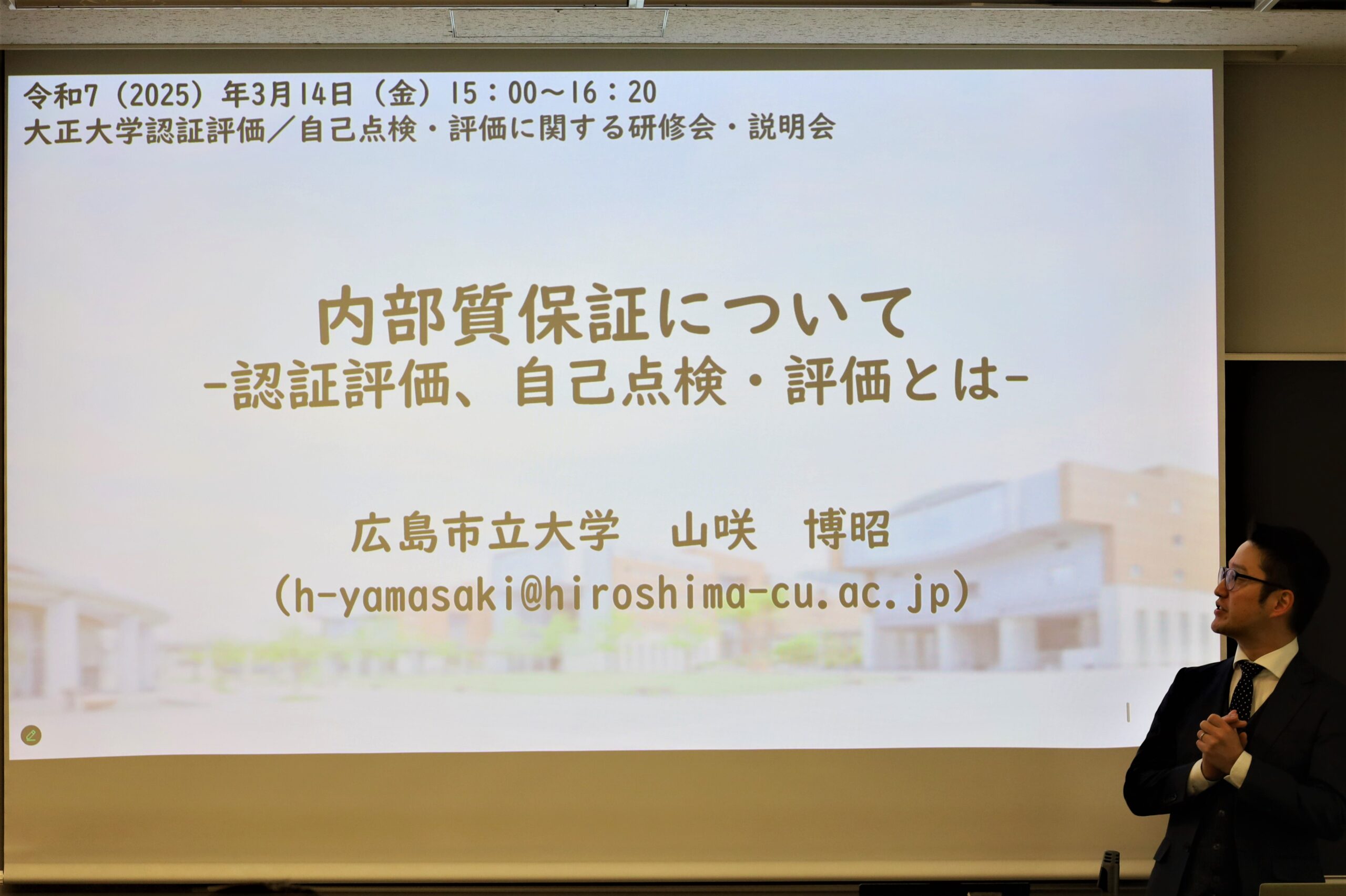 本学の全教職員を対象とした「令和6年度 認証評価/自己点検・評価に関する研修会・説明会」を、3月14日(金)に開催しました。