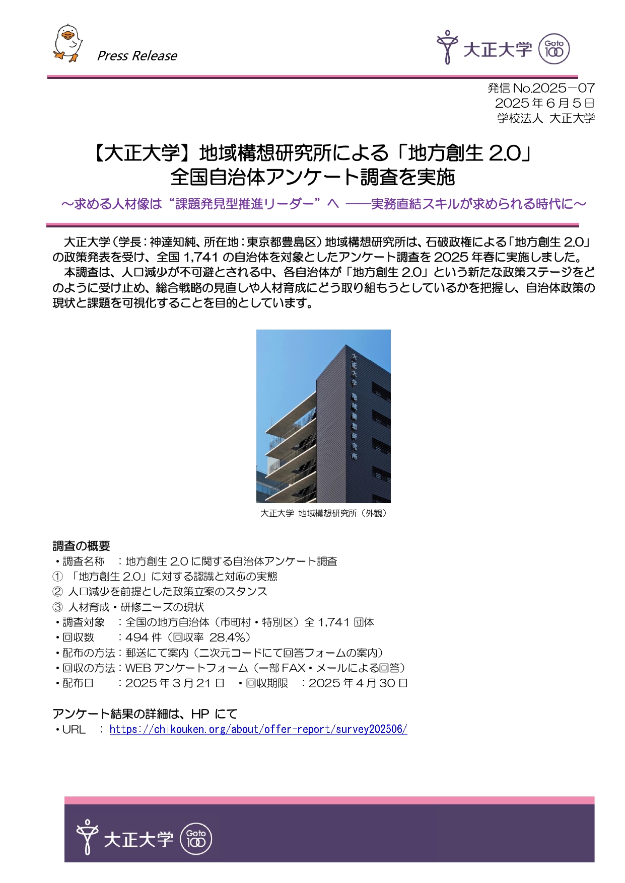 【プレスリリース】地域構想研究所による「地方創生2.0」 全国自治体アンケート調査を実施 ~求める人材像は“課題発見型推進リーダー”へ ――実務直結スキルが求められる時代に~