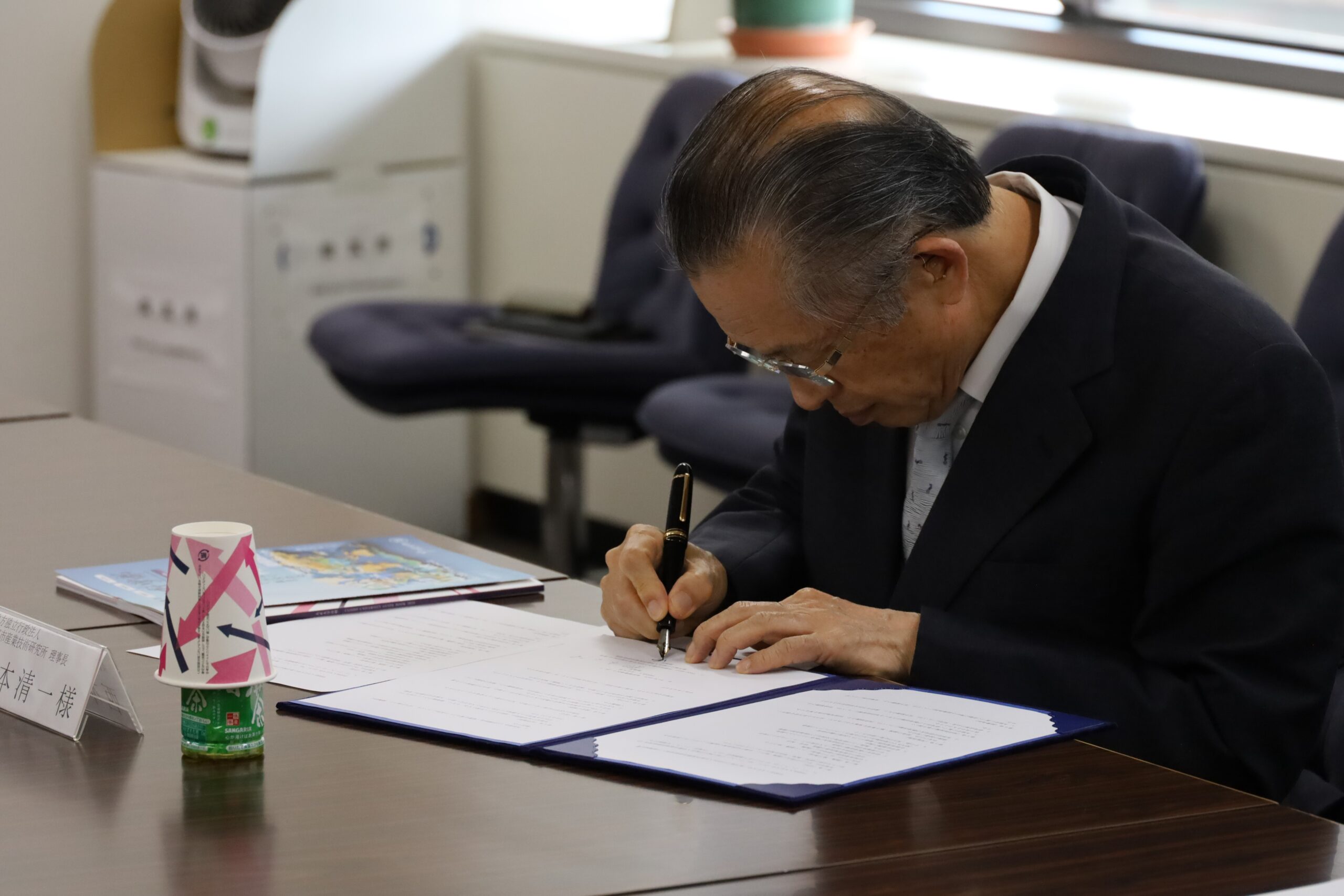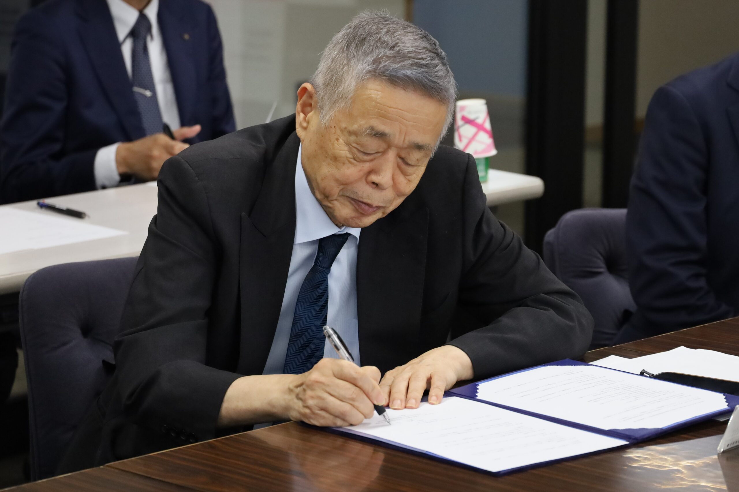 締結式の様子(左:大正大学理事長 柏木正博、右:地方独立行政法人京都市産業技術研究所 理事長 西本清一氏)