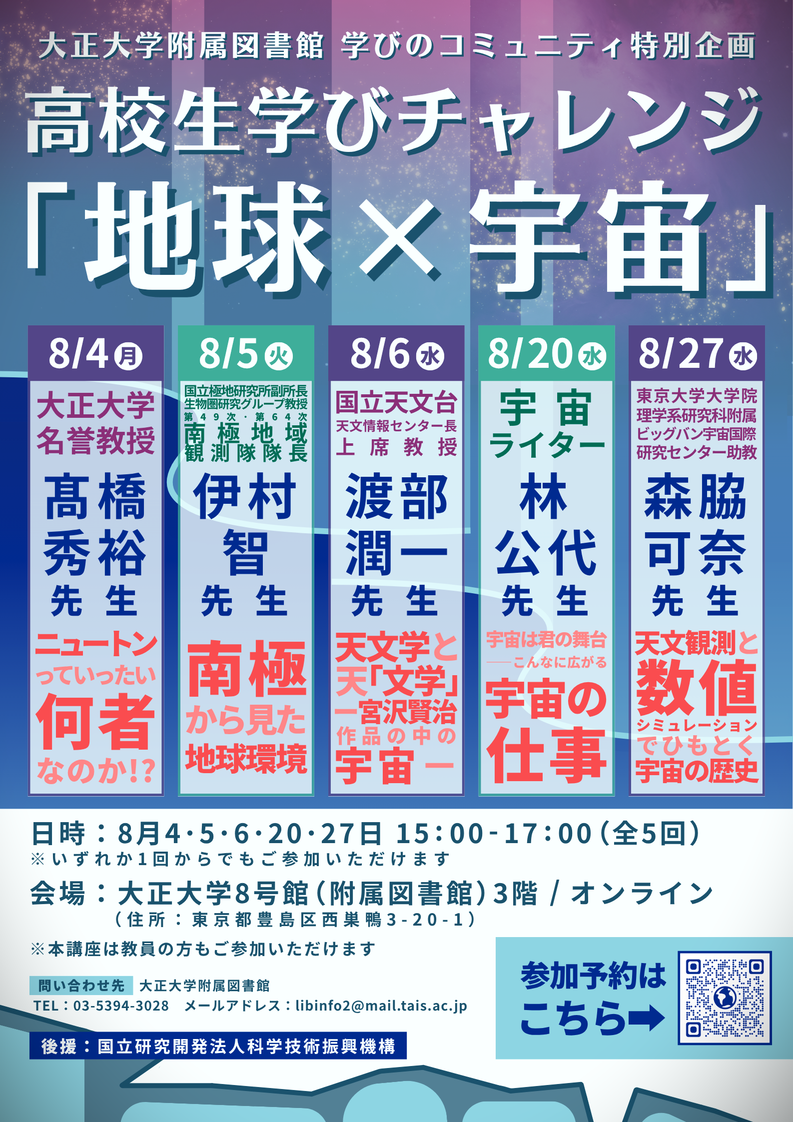 多様な学びの機会を提供する『学びのコミュニティ』として、附属図書館では「地球と宇宙を学ぶ」をテーマに、高校生を対象とした特別企画を実施します。