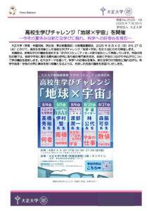 大正大学の附属図書館は、2025年8月4日(月)から27日(水)にかけて、高校生を対象とした高校生学びチャレンジ「地球×宇宙」を全5回にわたり開催します。