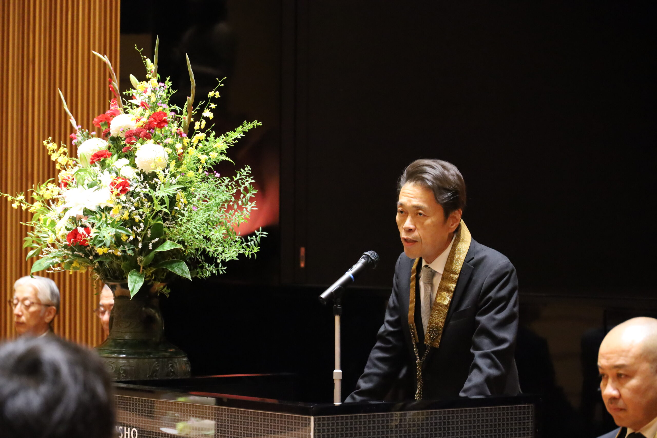 続いて神達知純学長が卒業生に向けて式辞を述べた後、理事長から祝辞が述べられました。