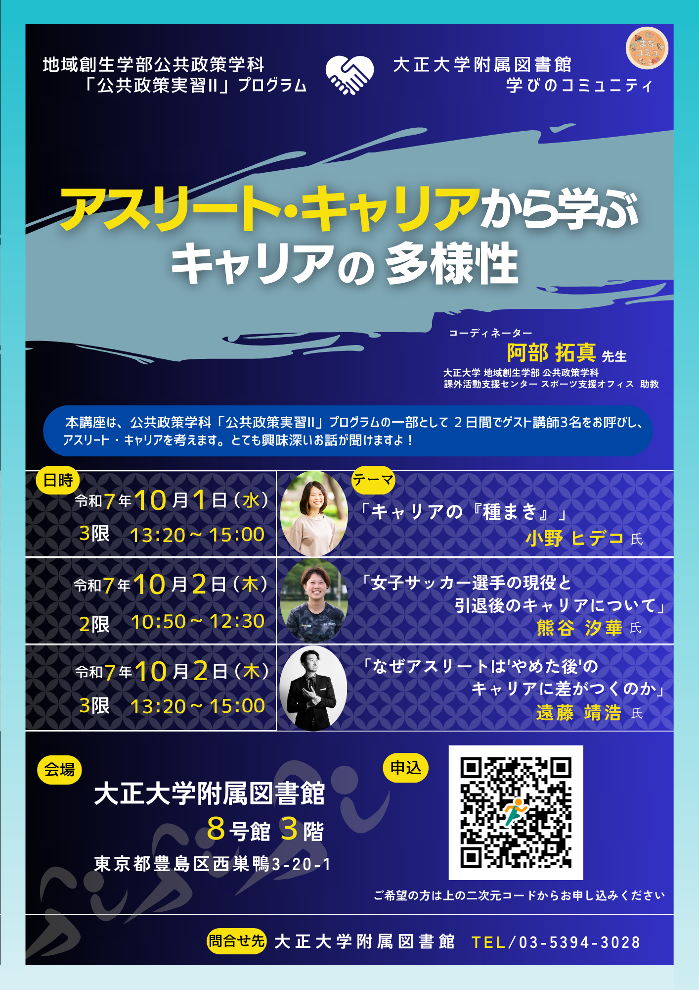 連続公開講座『アスリート・キャリアから学ぶキャリアの多様性』を10月1日(水)・2日(木)に開催します。