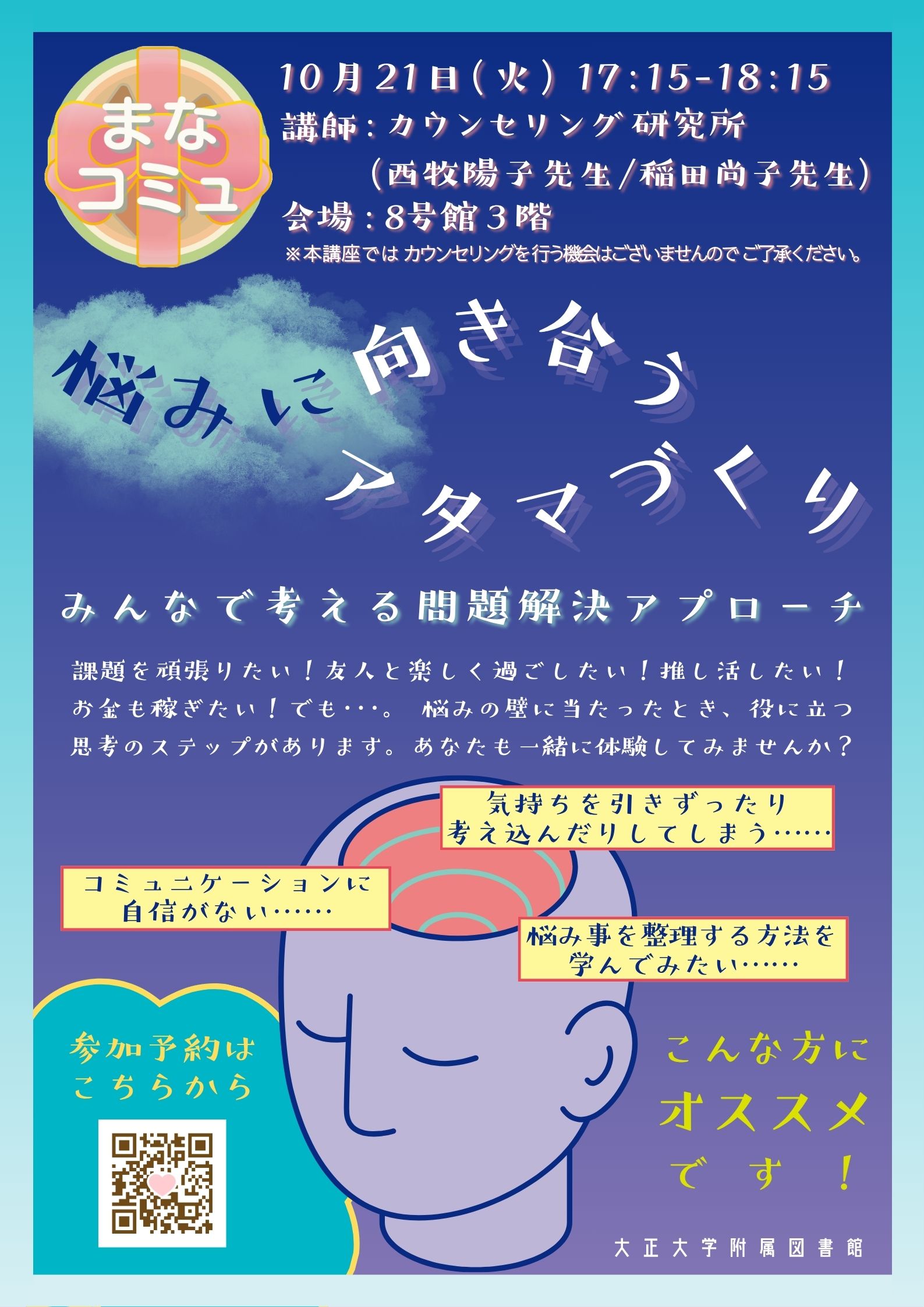 【イベント】公開講座『悩みに向き合うアタマづくり みんなで考える問題解決アプローチ』を10月21日(火)に開催します