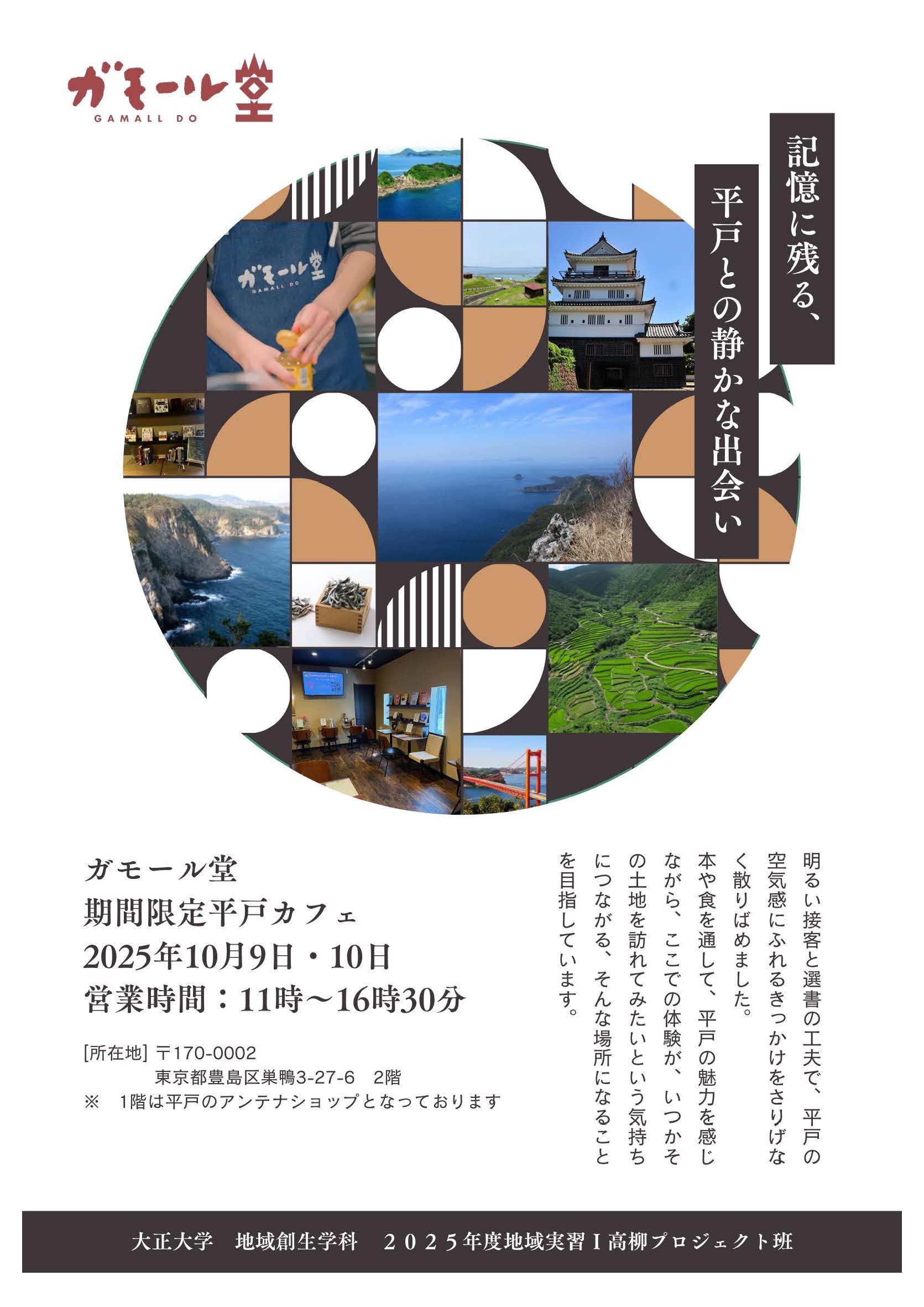 【イベント】10月9日(木)・10日(金)に本学学生によるイベント『期間限定平戸カフェ』をガモール堂で開催します