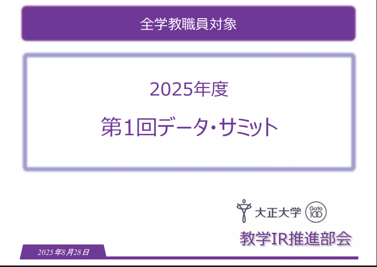 2025年8月28日(木)に、本学教学IR推進部会主催「令和7年度データサミット(学内IR報告会)」を開催しました。