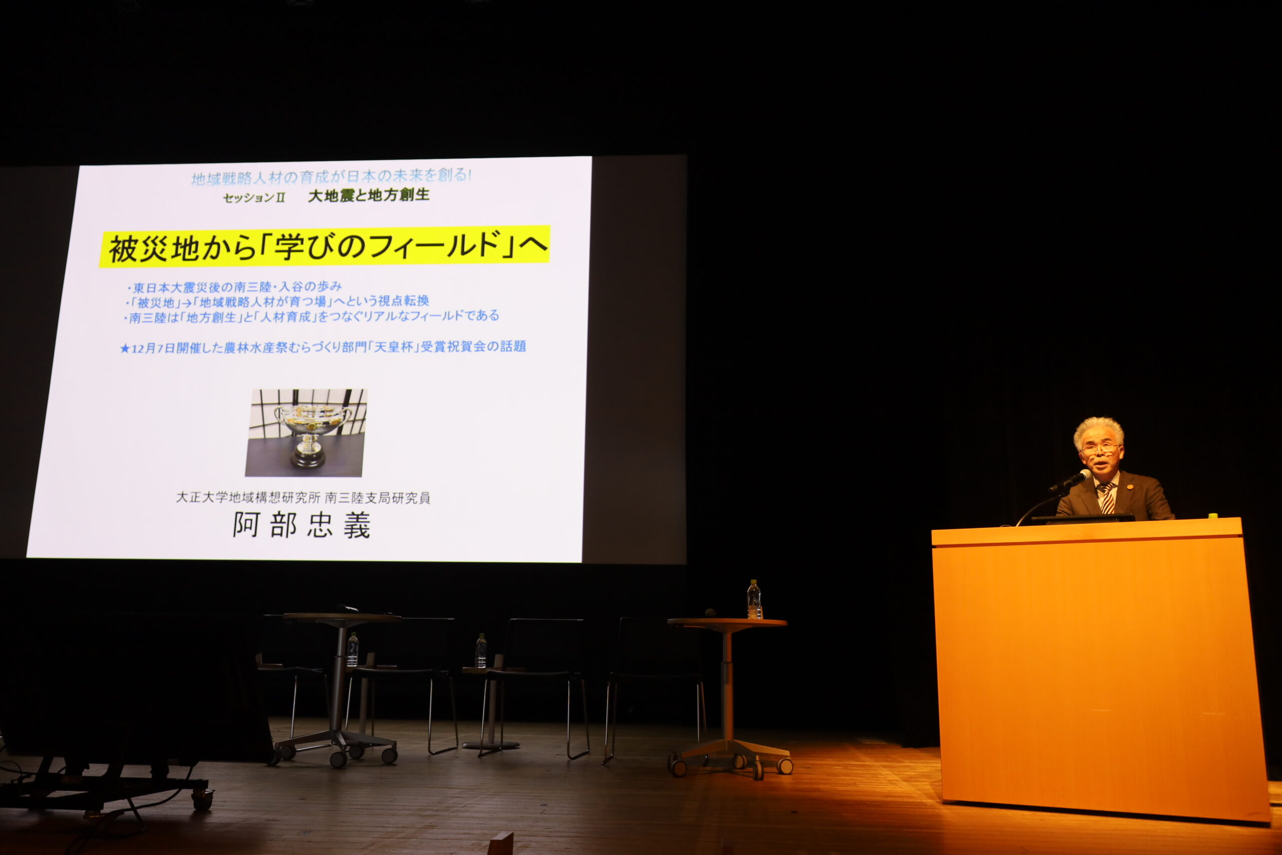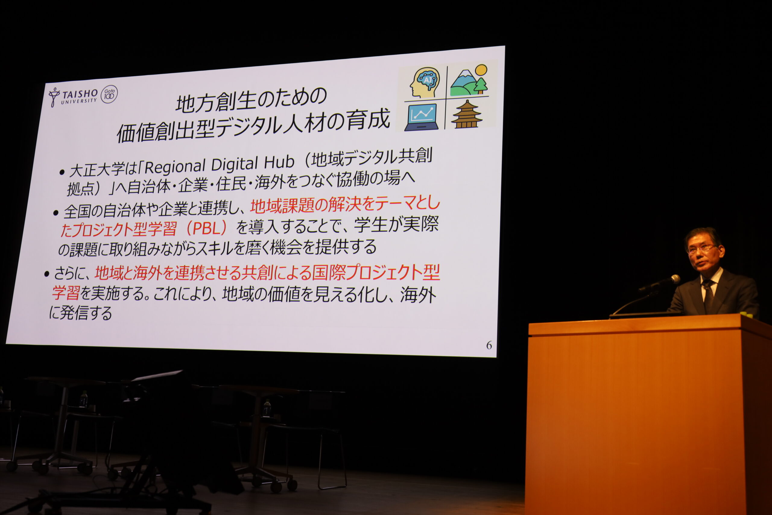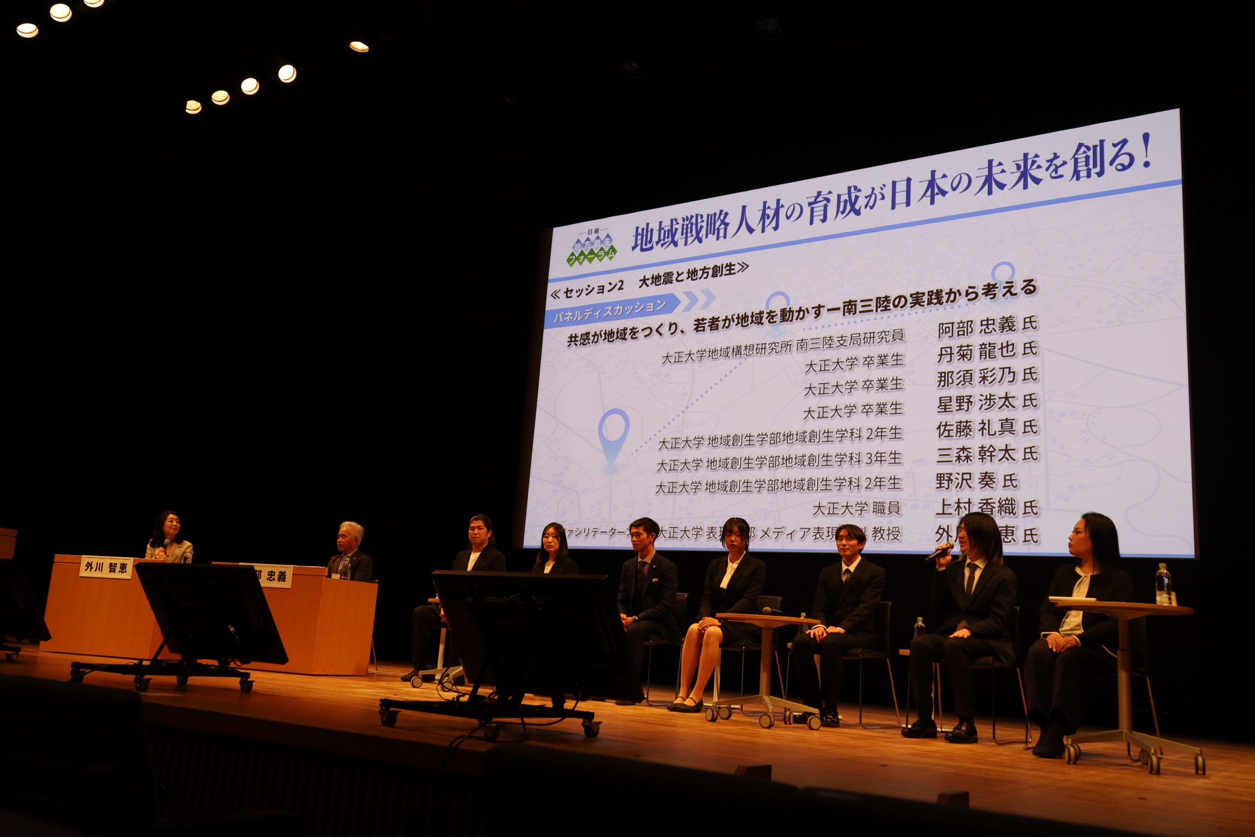 当日は、国・企業・教育機関のリーダーも登壇。地域課題の現場から得られた知見や課題の紹介とともに、大正大学の学生・研究者による発表やディスカッションを通し、学びと実践をつなぐ本学の取り組みを発表しました。