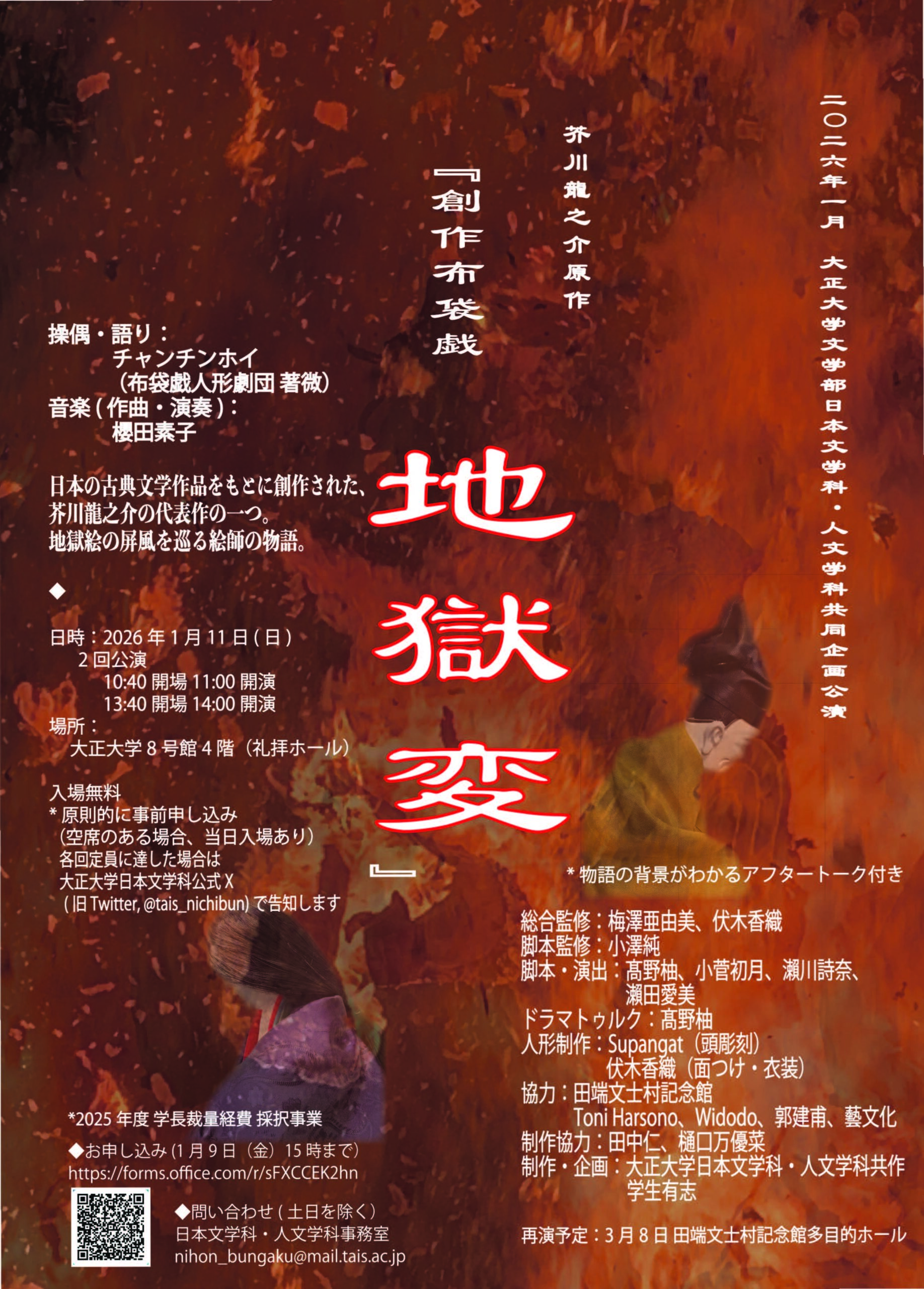 芥川龍之介原作『創作布袋戯 地獄変』(文学部日本文学科・人文学科共同企画公演)を1月11日(日)に開催します。