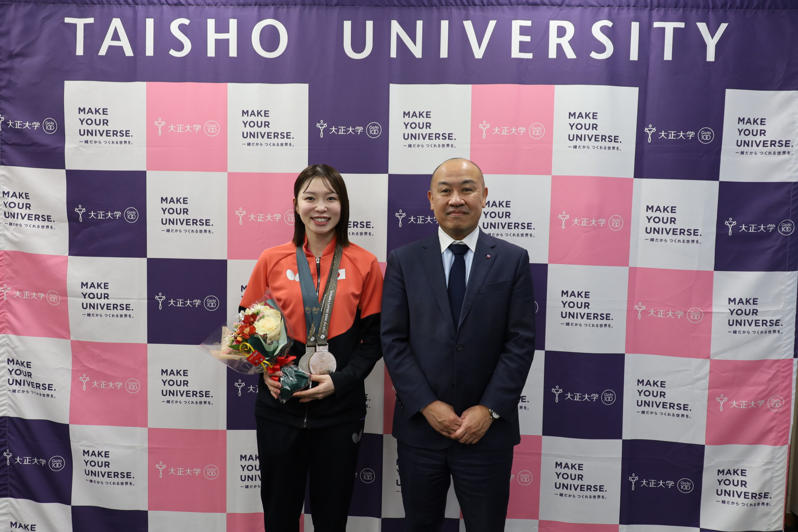 山田瑞恵さん(2017年度 仏教学科卒・SMBC日興証券株式会社所属)が「第25回夏季デフリンピック競技⼤会 東京2025(卓球:11月18日~24日 東京体育館)」で卓球日本代表として出場し、女子団体で銀メダル、女子ダブルスで銅メダルを獲得しました。