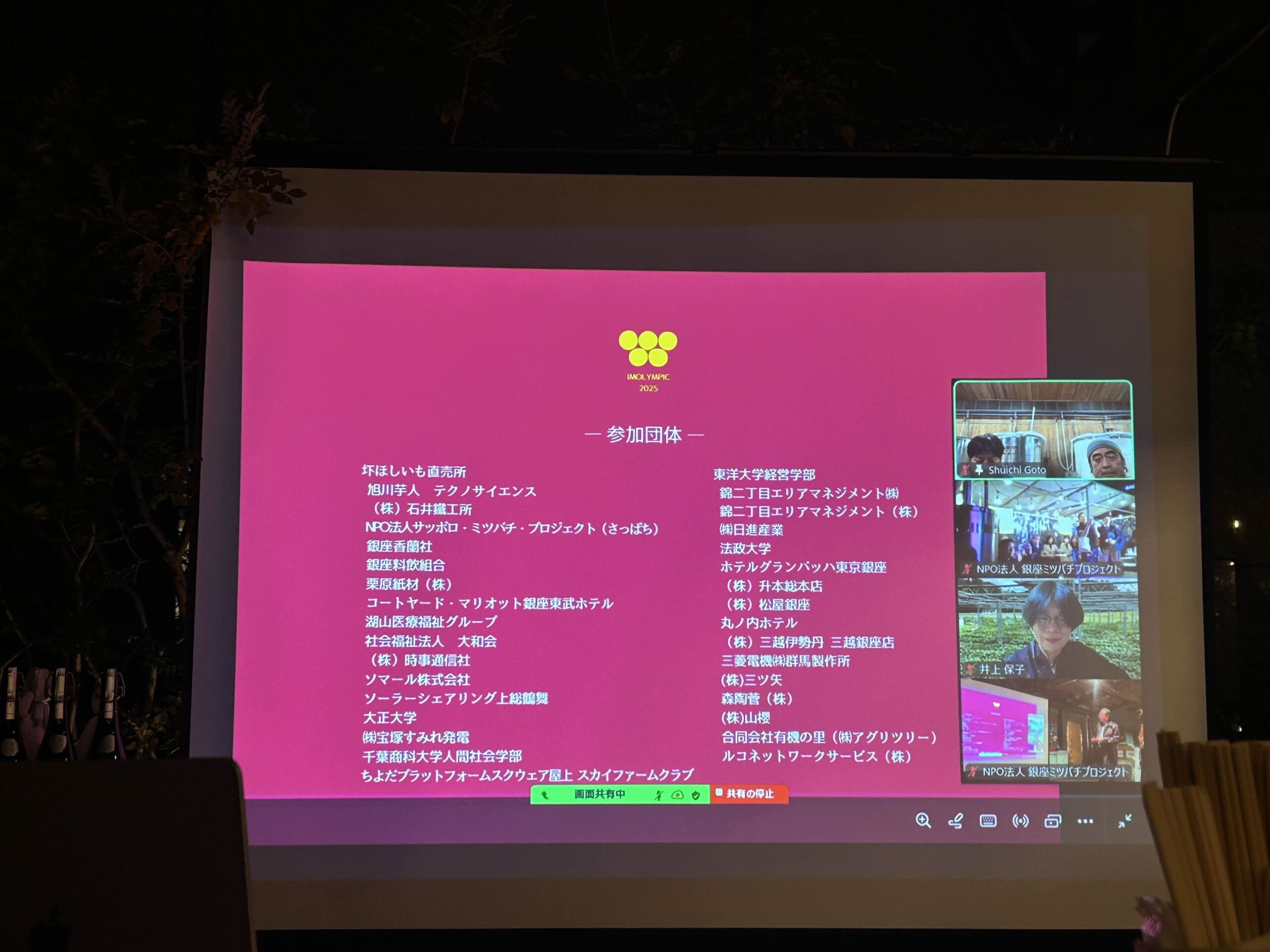 東京都中央区銀座でミツバチを養蜂するプロジェクトである「銀座ミツバチプロジェクト」が毎年開催しているイベント。「IMOLYMPIC憲章:屋上緑化と芋焼酎『銀座芋人』で循環する緑化活動をめざす」にもとづき、多数の参加団体が屋上とその敷地内でサツマイモを栽培し、収穫したサツマイモの大きさを競っています。