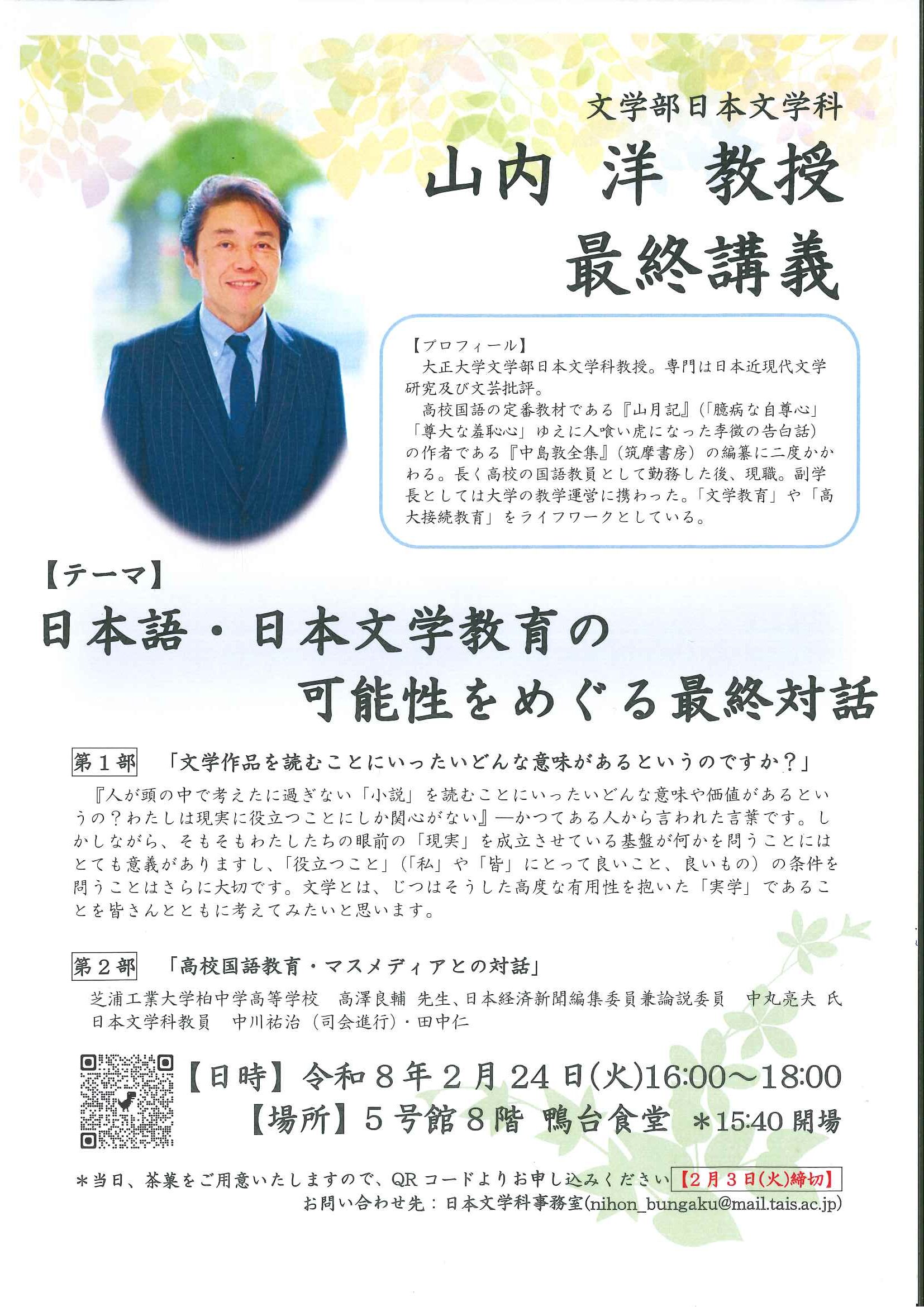 【お知らせ】最終講義(日本文学科 山内先生)のご案内