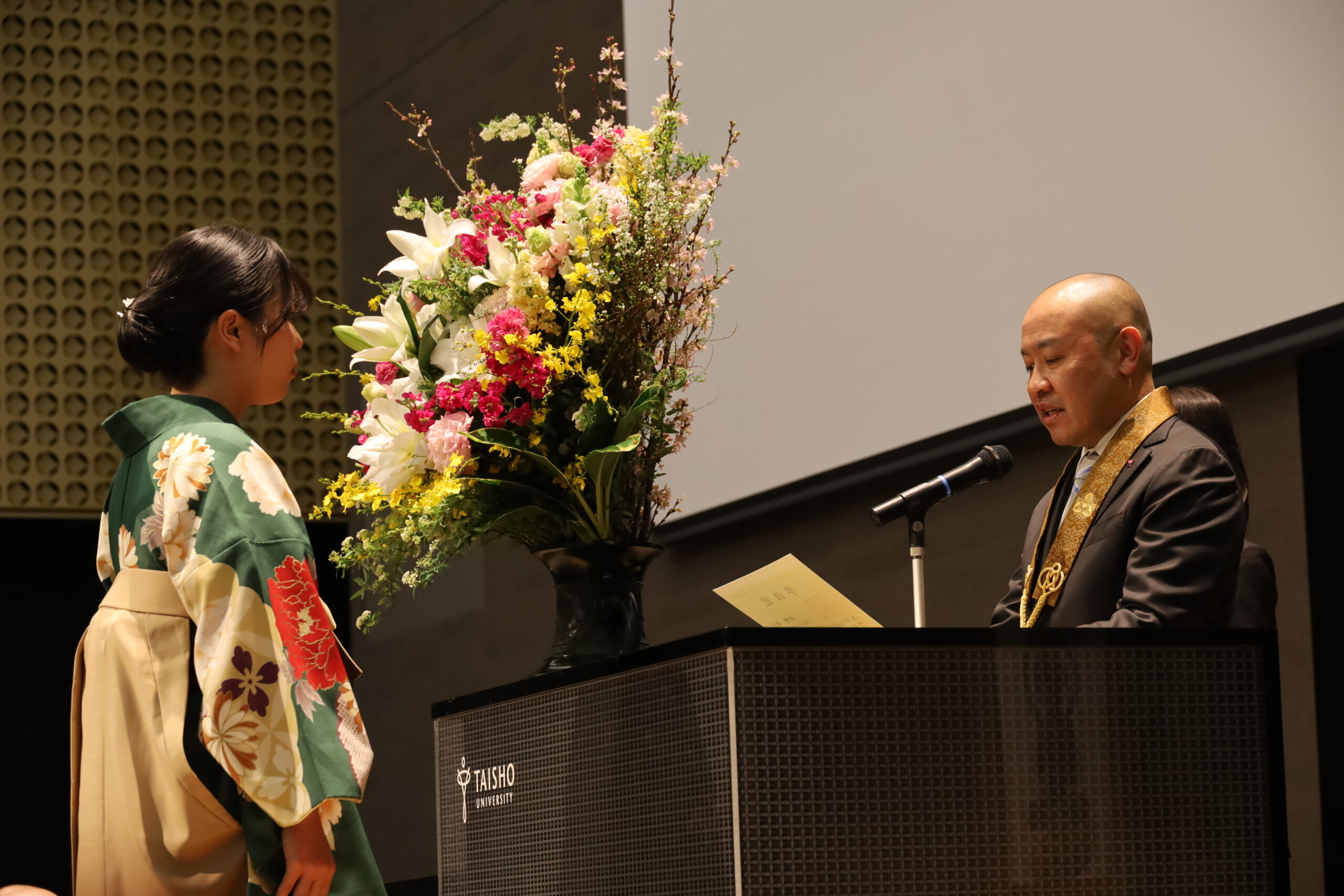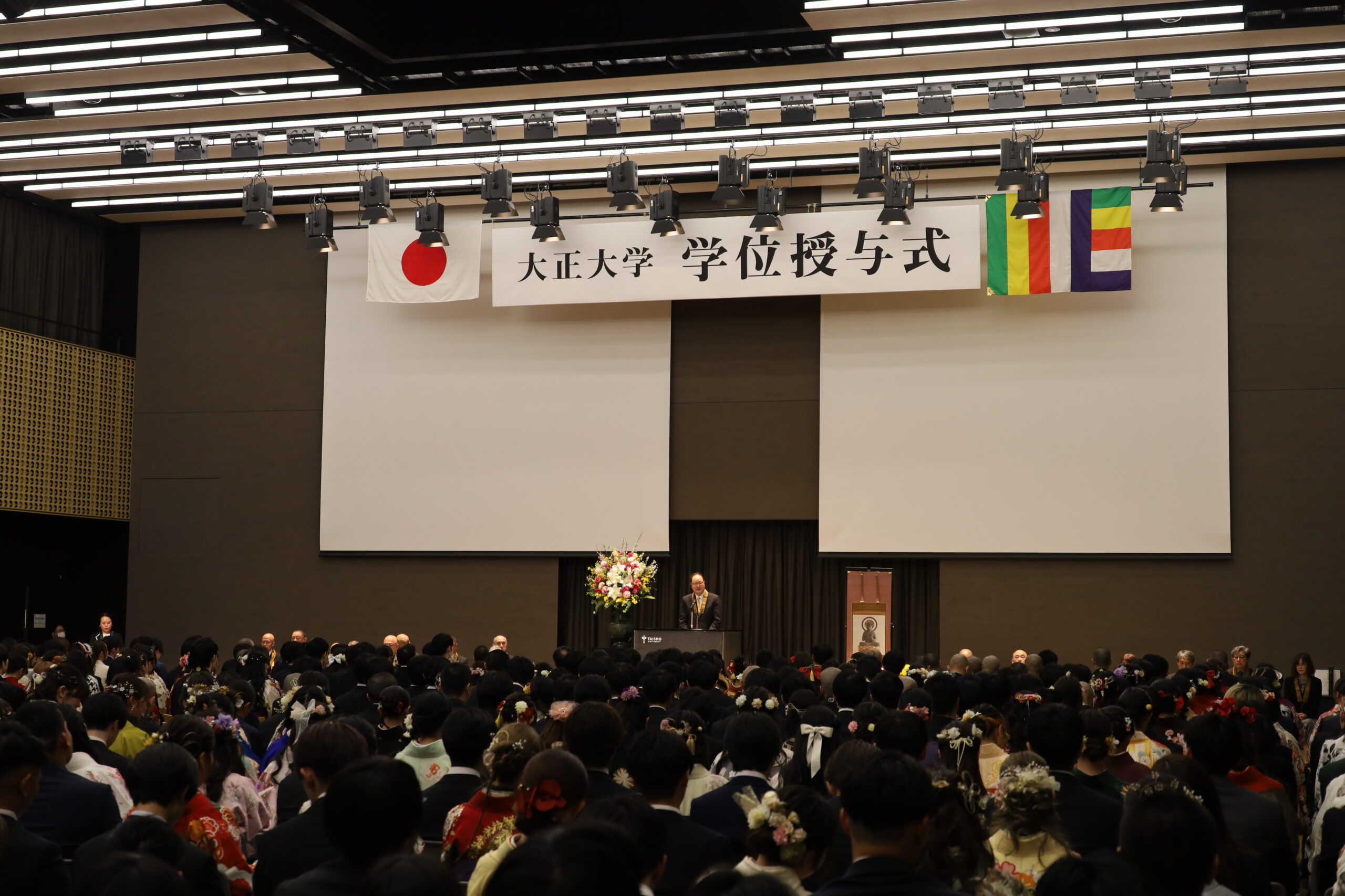 「皆さんは、大正大学で自ら問いを立て、主体的に学び続ける姿勢を培ってきたはずです。その力は、これから皆さんが社会の中で生きていくうえで、大きな支えとなることでしょう。