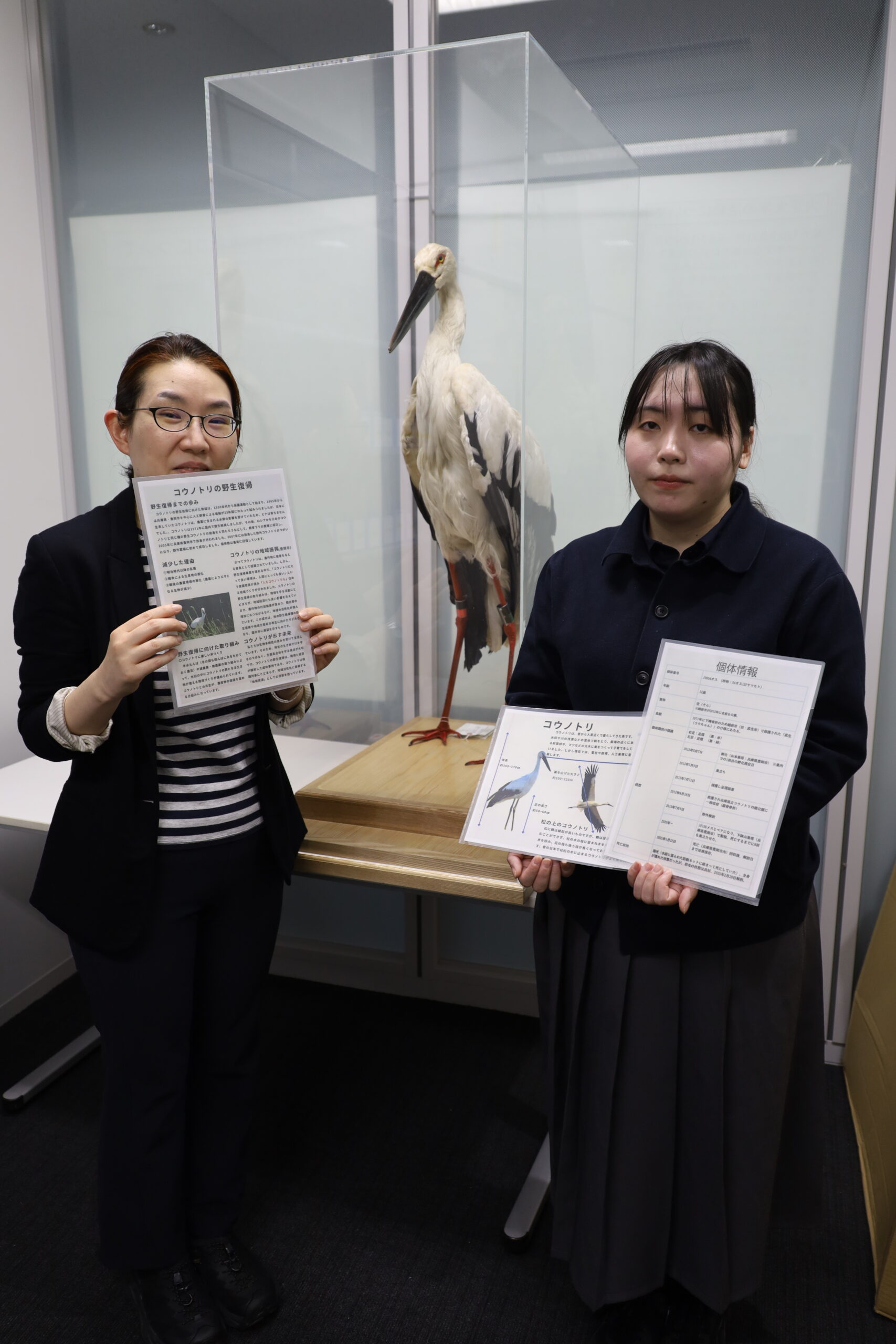 現在、コウノトリの剝製は、本学7号館8階にて環境教育や意識啓発に活用されています。