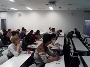 学生は、メモを取りながら集中して聞いていました。