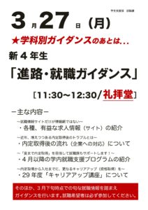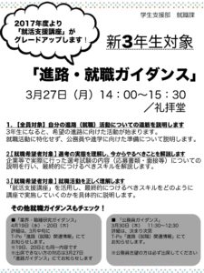 3月27日(月)に新2~4年生向け「就職・進路ガイダンス」を行います。