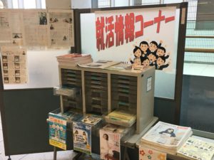 本学7号館1階には就職活動に役立つ冊子や情報誌を並べた「就活情報コーナー」が 設置されています。 興味のある資料はご自由にお持ちください! また、就職課のある2号館2階には より多くの資料、貸出書籍等を用意していますのでぜひご活用ください!