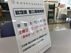 就職課の窓口時間は以下の通りとなります。