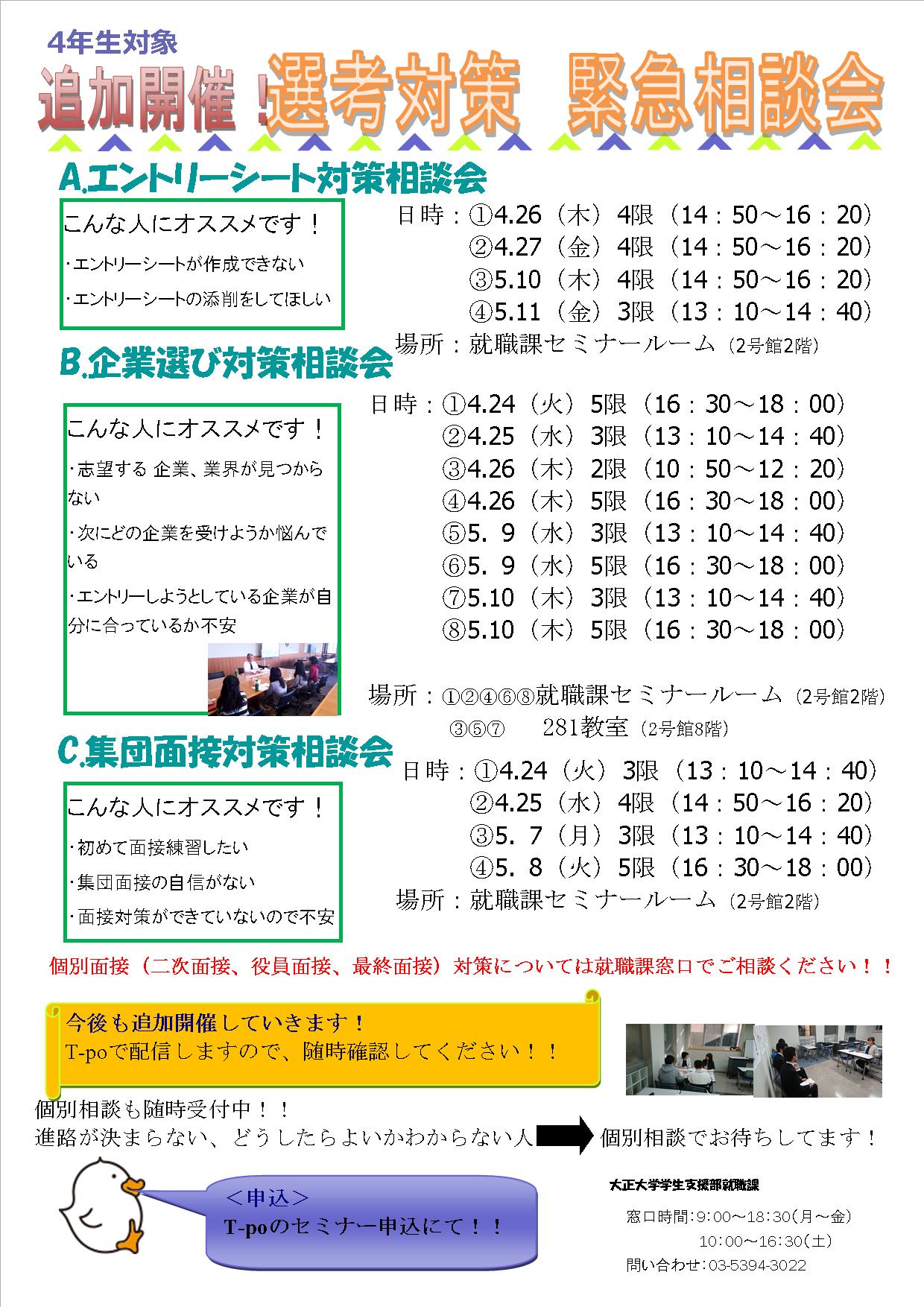 <4年生対象>選考対策!緊急相談会の開催しました!