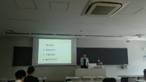 「キャリアを考える上での選択肢を増やそう!」をテーマに、サッポログループの歴史、経営方針をはじめ、業界の動向や商品の特徴、顧客重視の考え方など幅広く説明され、学生自身が考るきっかけをつくりながら講義を進められました。