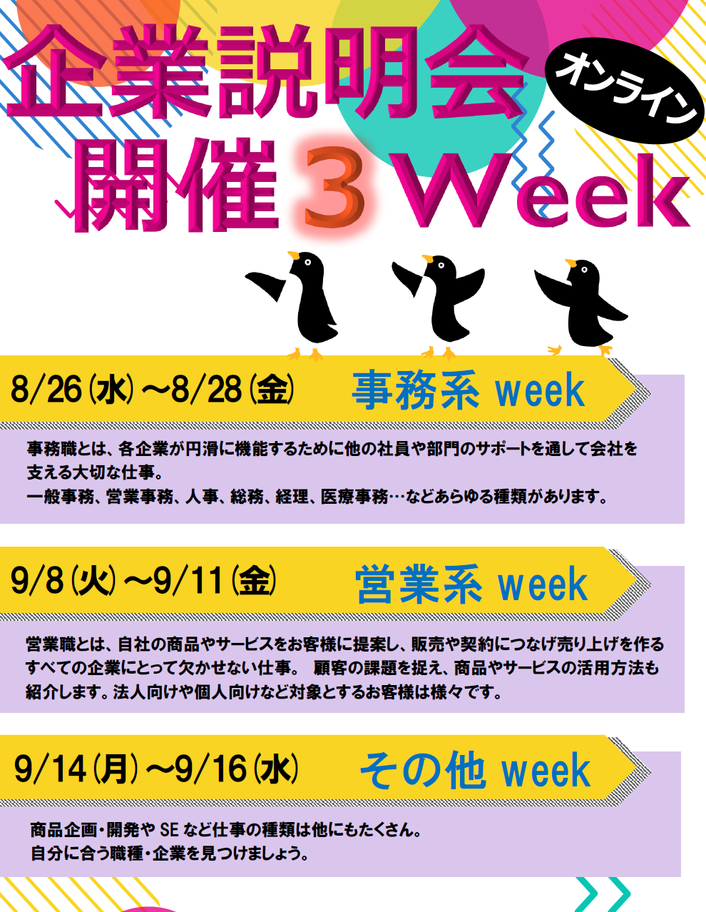 事務系の職種を中心にオンライン企業説明会(事務系week)を実施しました。