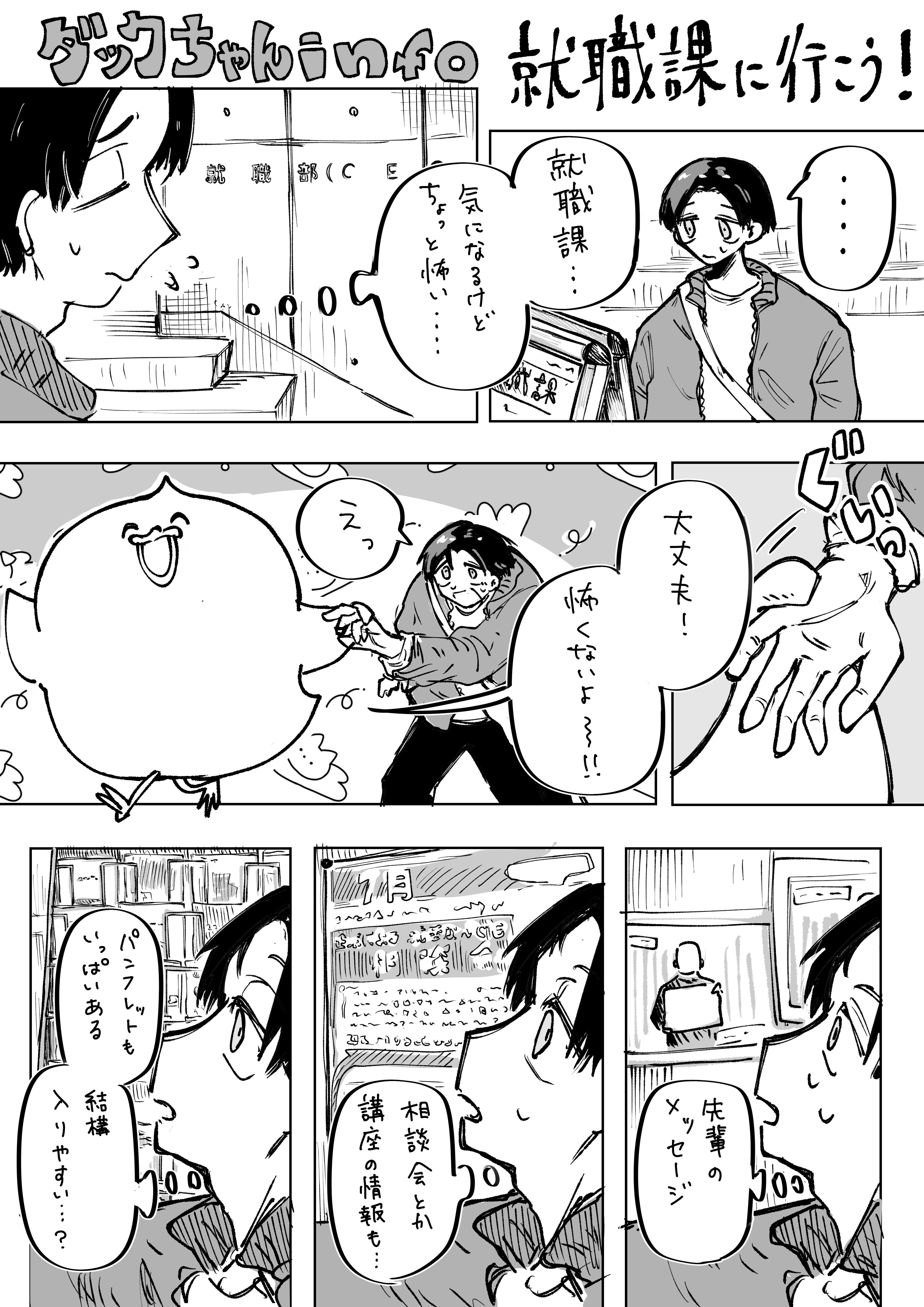 就職課学生スタッフによる就職課案内 短期連載「ダックちゃんinfo」第1回