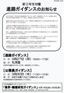 進路ガイダンスを実施しました(新2年生~新4年生)